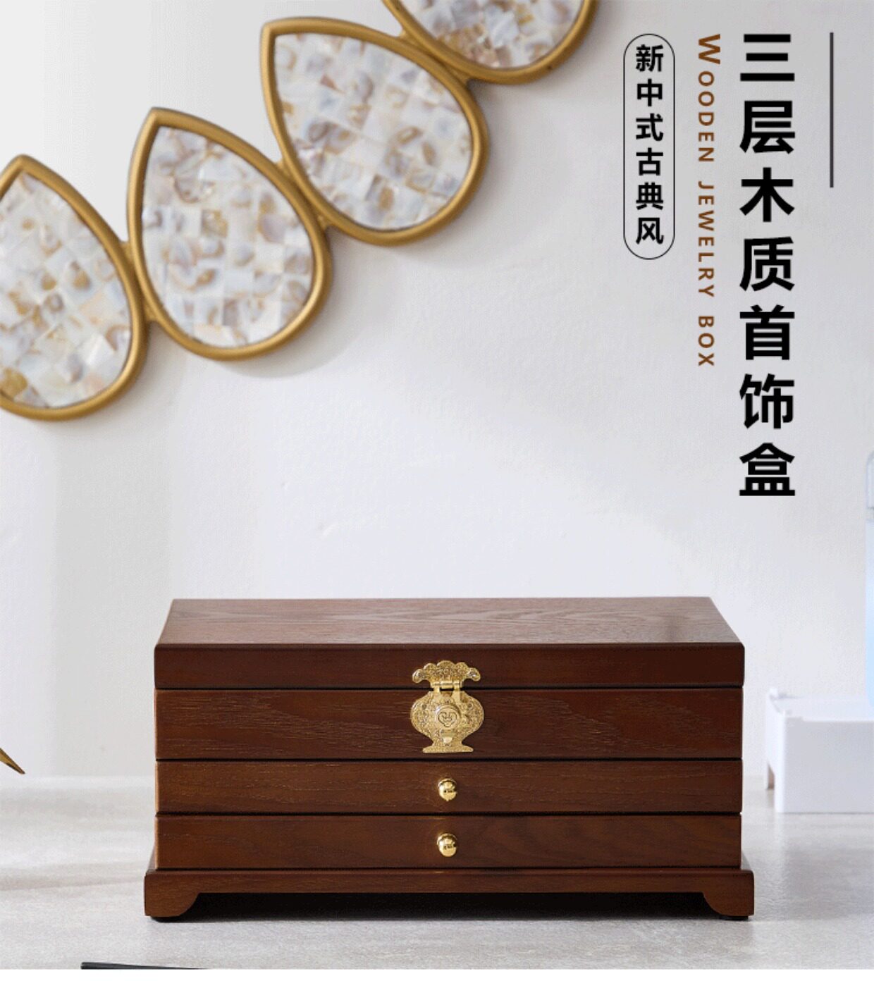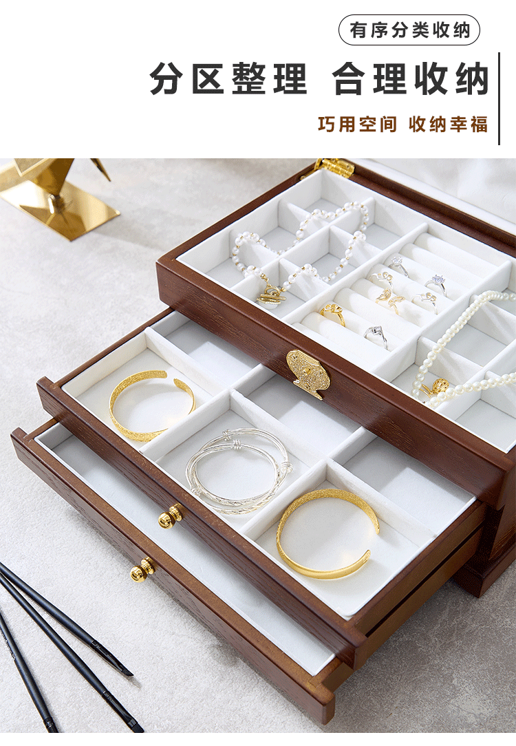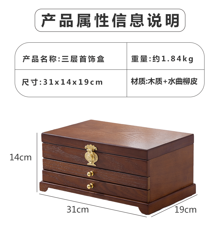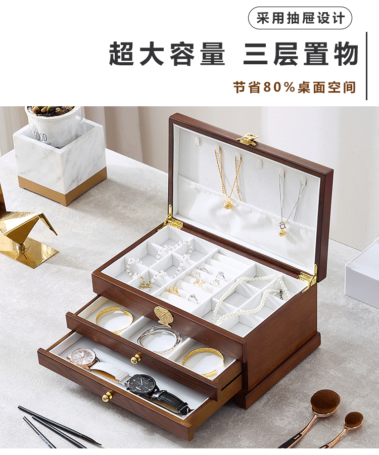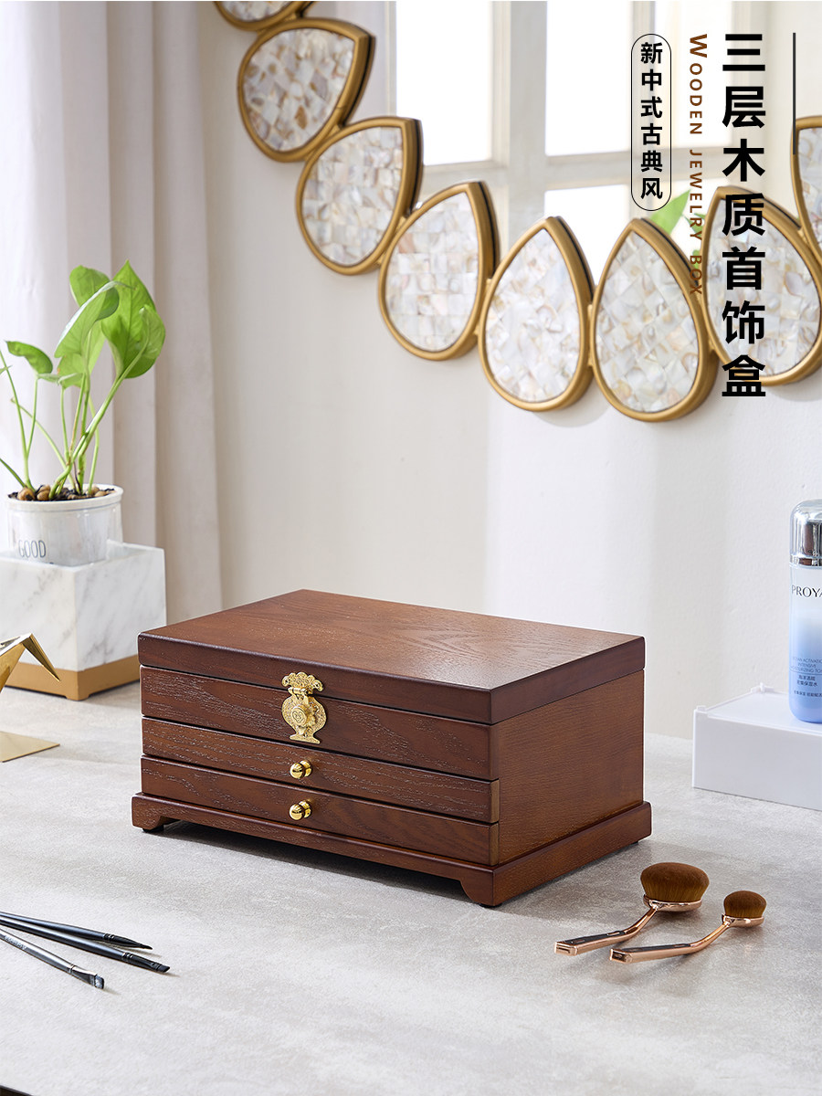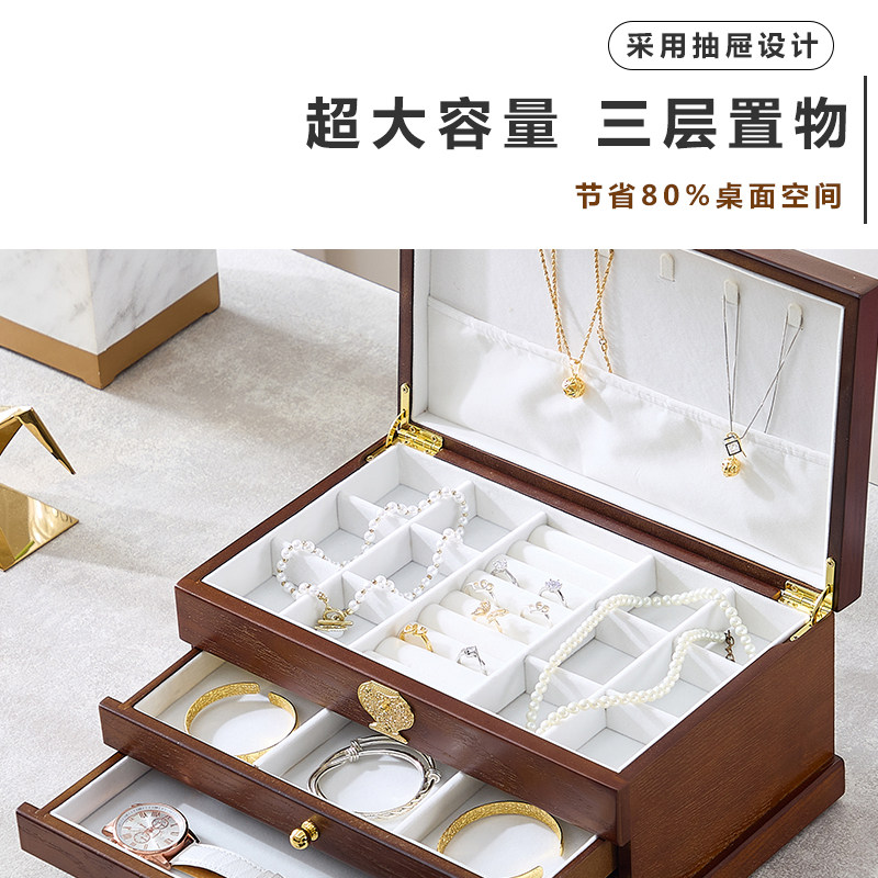 Коробочка для хранения, деревянная коробка для хранения, вместительное и большое ретро высококлассное ювелирное украшение, аксессуар, китайский стиль
