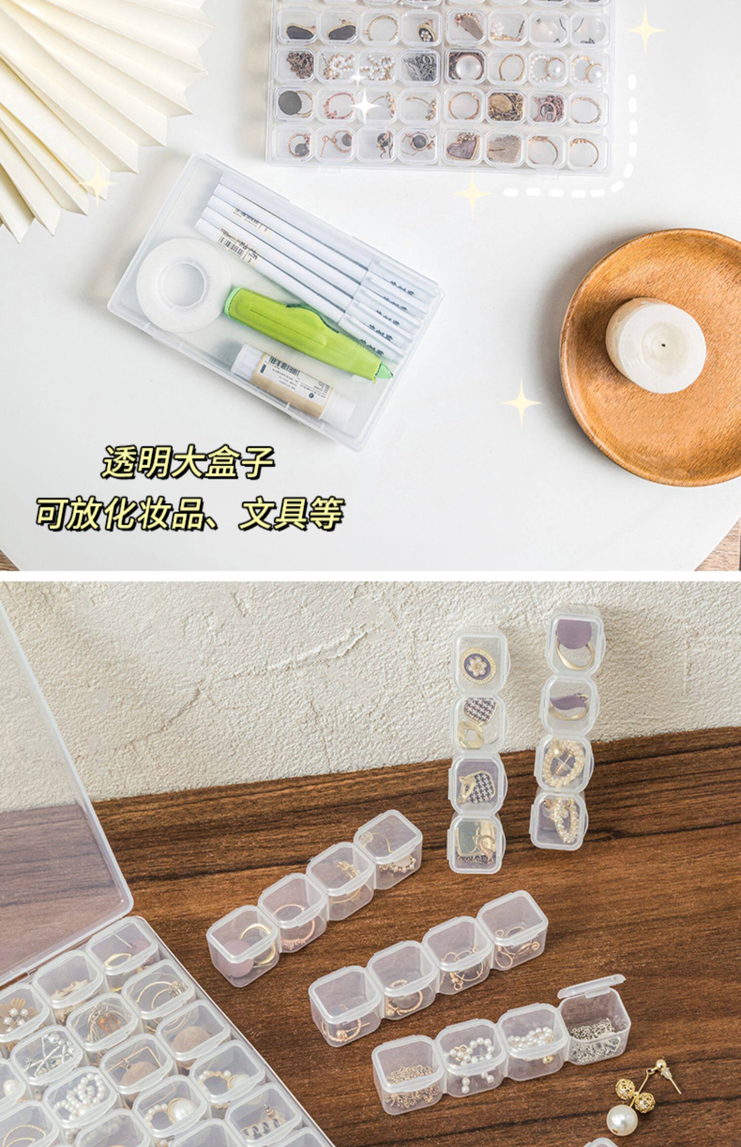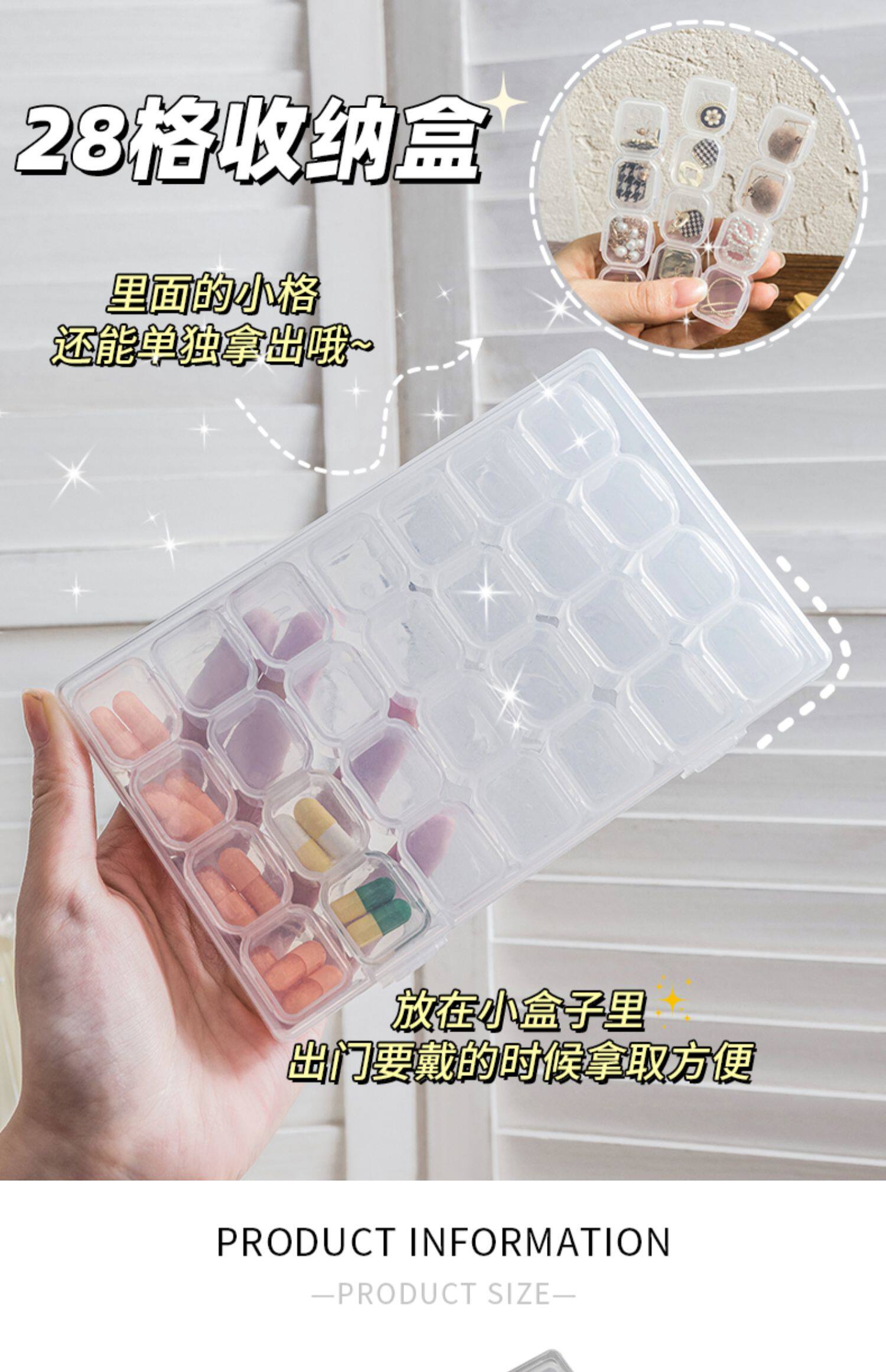 - Прозрачная коробка для хранения, наклейка, 28 ячеек