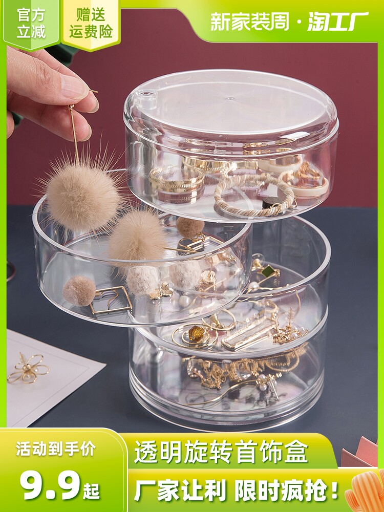 Прозрачная акриловая коробка для хранения, настольная резинка для волос, серьги, спонж, вместительная и большая помада