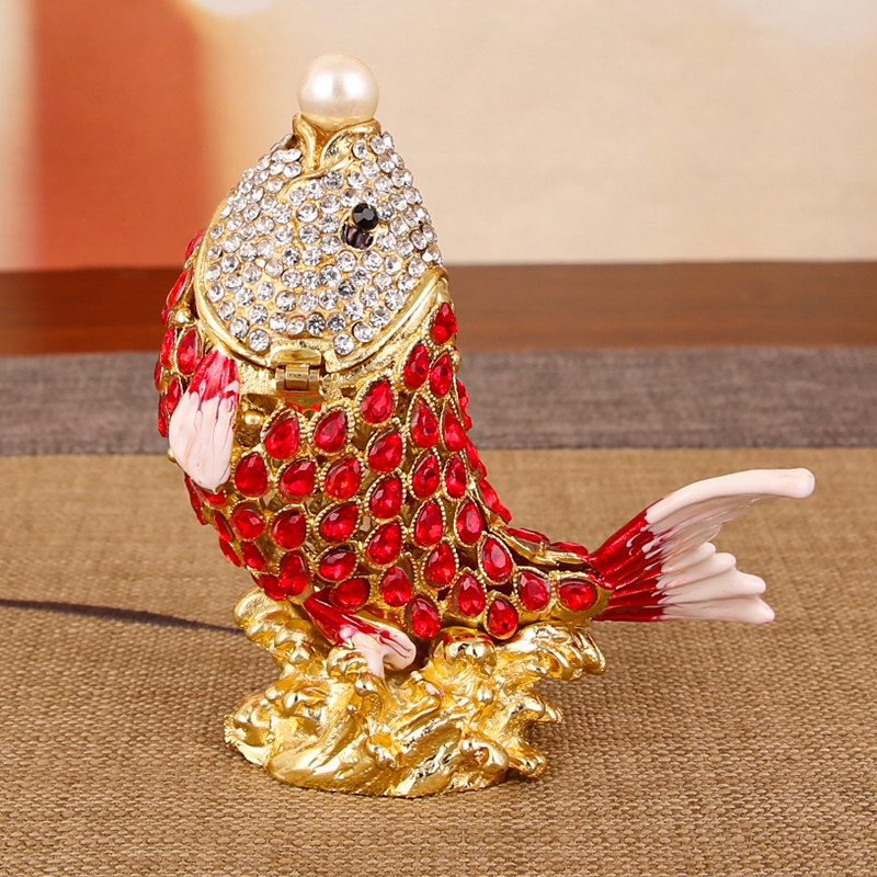 Декор из смолы, креативная коробочка для хранения, эмаль, металлический аксессуар, подарочная коробка, карп, домашний декор, на удачу, подарок на день рождения