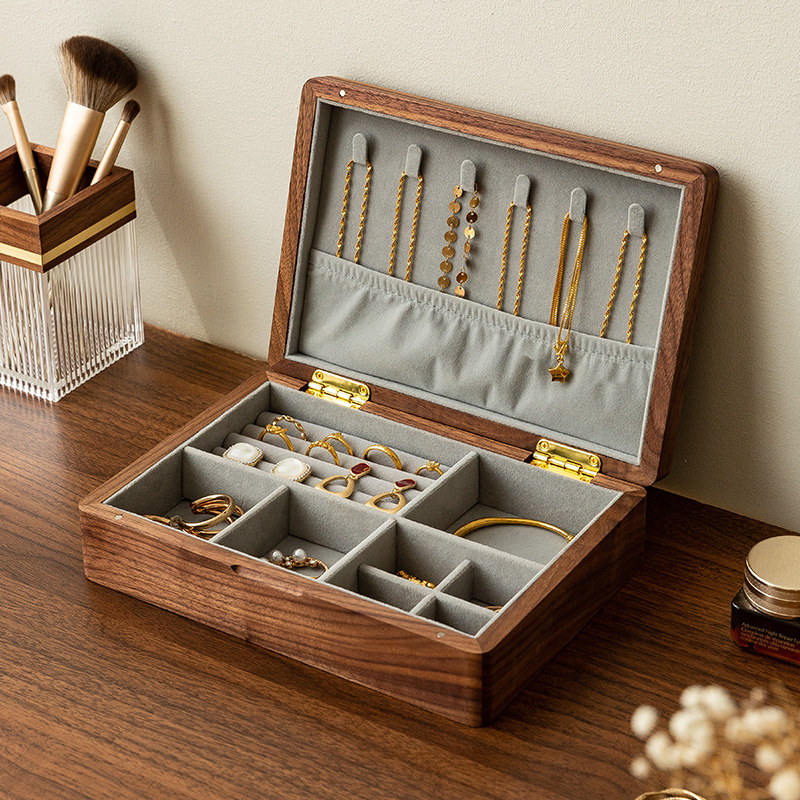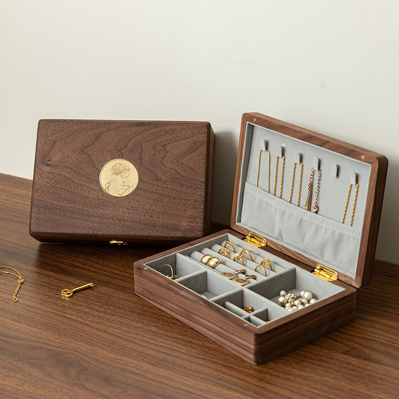 Коробочка для хранения, деревянная коробка для хранения, высококлассное изысканное ретро ожерелье и серьги, кольцо, ювелирное украшение, сундук с сокровищами, аксессуар