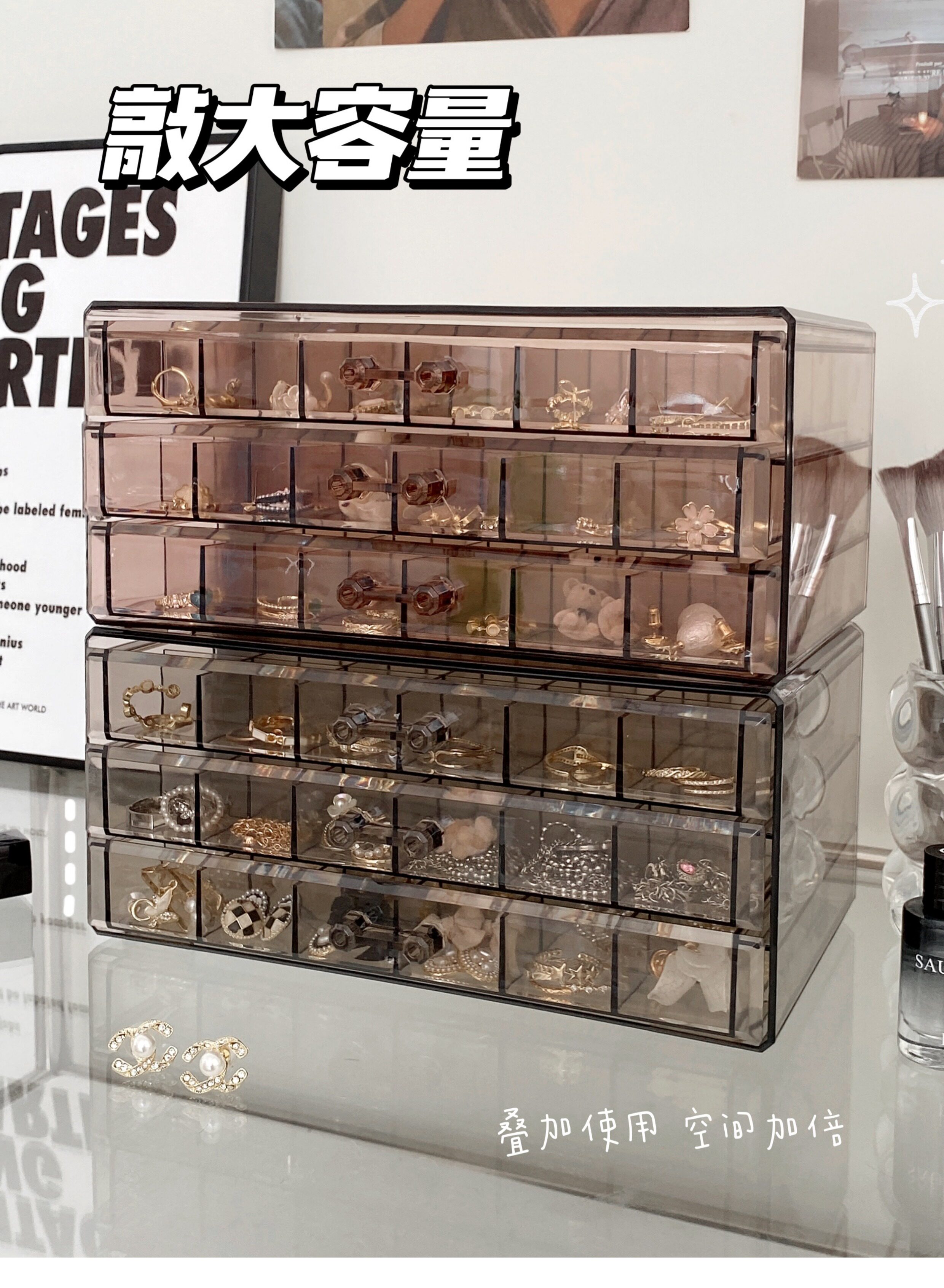 Коробочка для хранения, коробка для хранения, ювелирное украшение, аксессуар, серьги, ожерелье, вместительная и большая цепочка