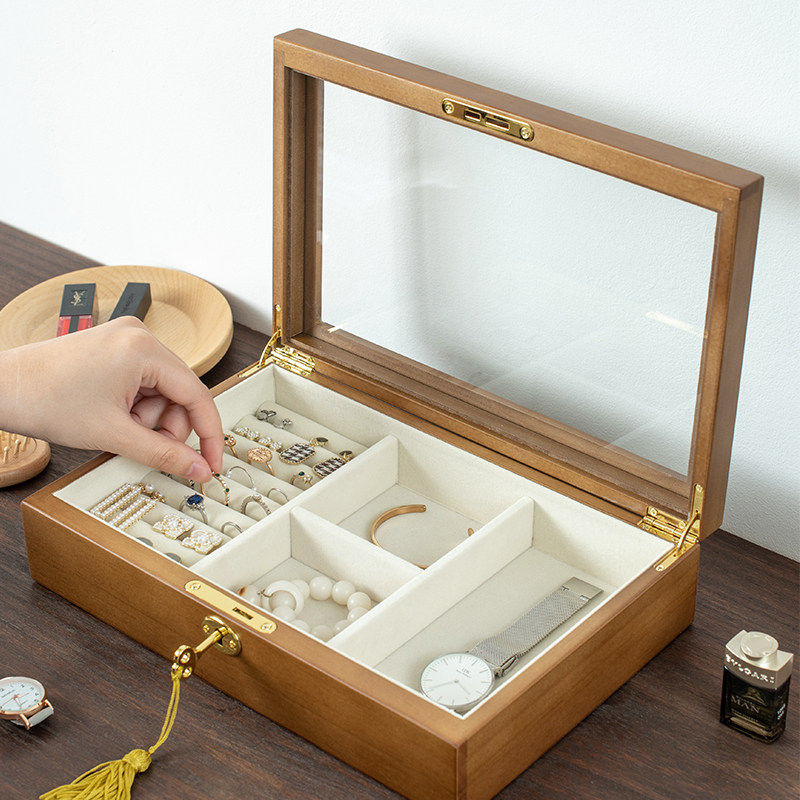 Деревянная коробочка для хранения, высококлассная коробка для хранения, изысканное кольцо, ретро ожерелье, ювелирное украшение, золотой аксессуар