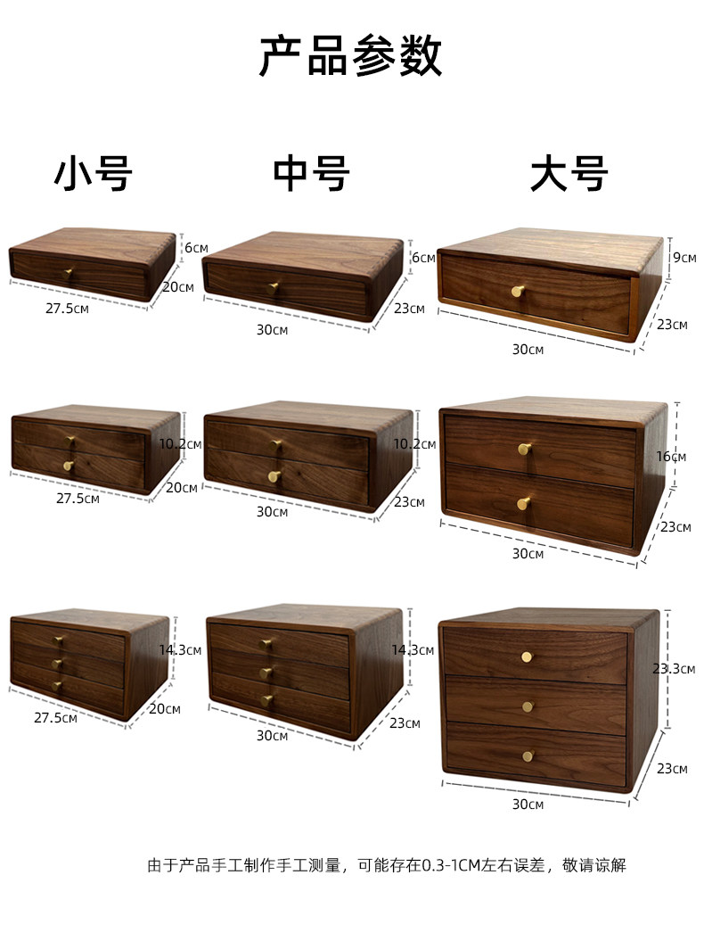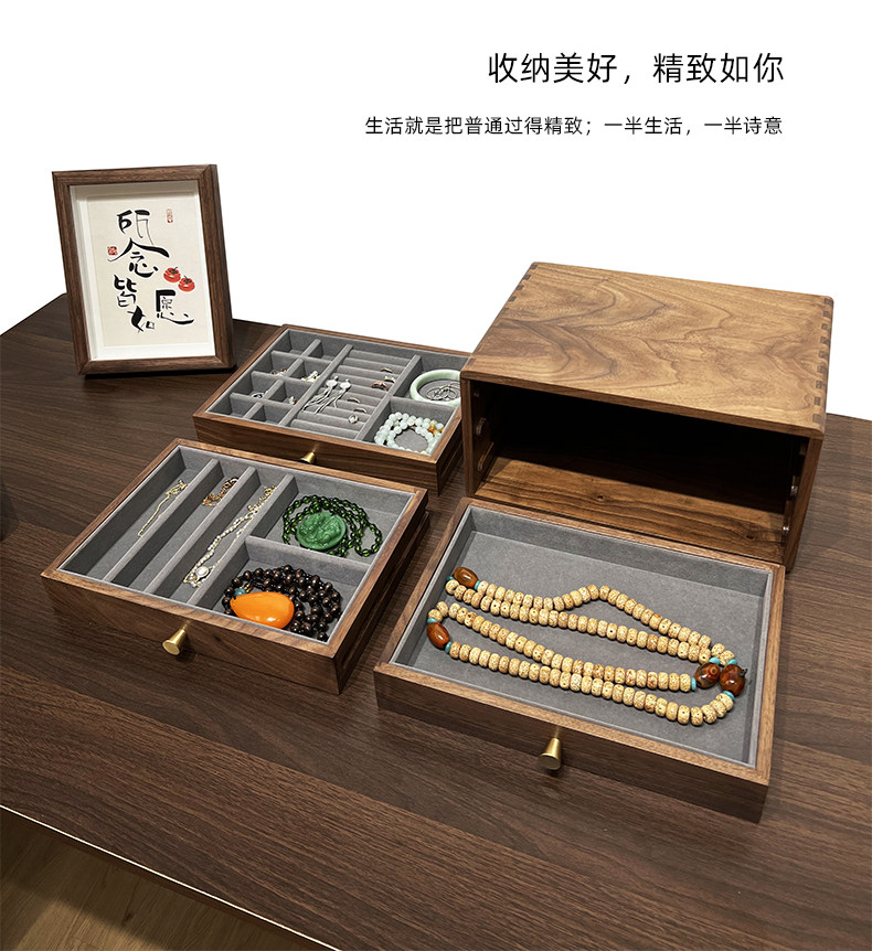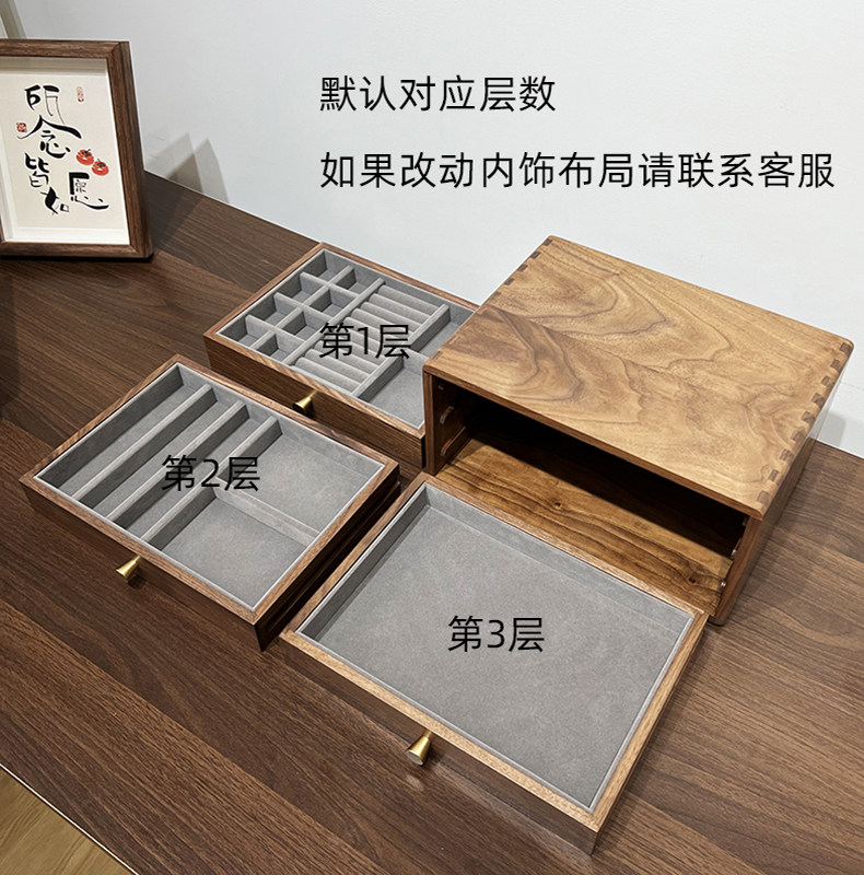 Черный ореховый деревянный ювелирные изделия из коробки для хранения сплошной древесины, ящик для хранения дома мягкая одежда маленькая шкафа на рабочем столе многослойный ящик для ящика