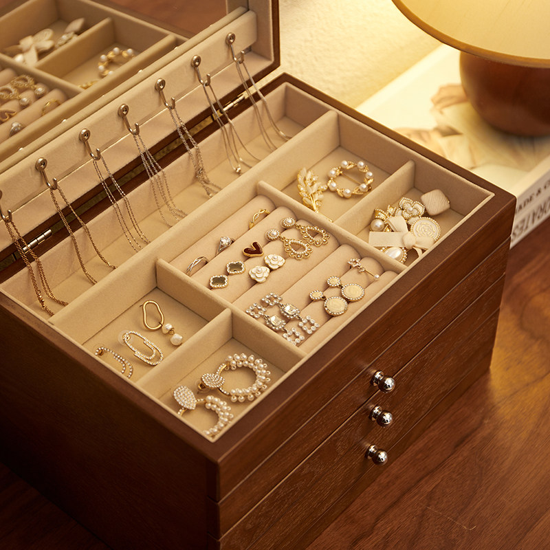 Деревянная высококлассная коробочка для хранения, изысканное ювелирное украшение, вместительный и большой сундук с сокровищами, многослойные серьги, ожерелье, аксессуар, коробка для хранения