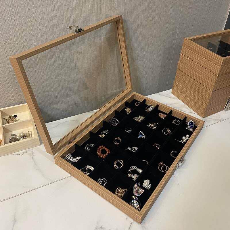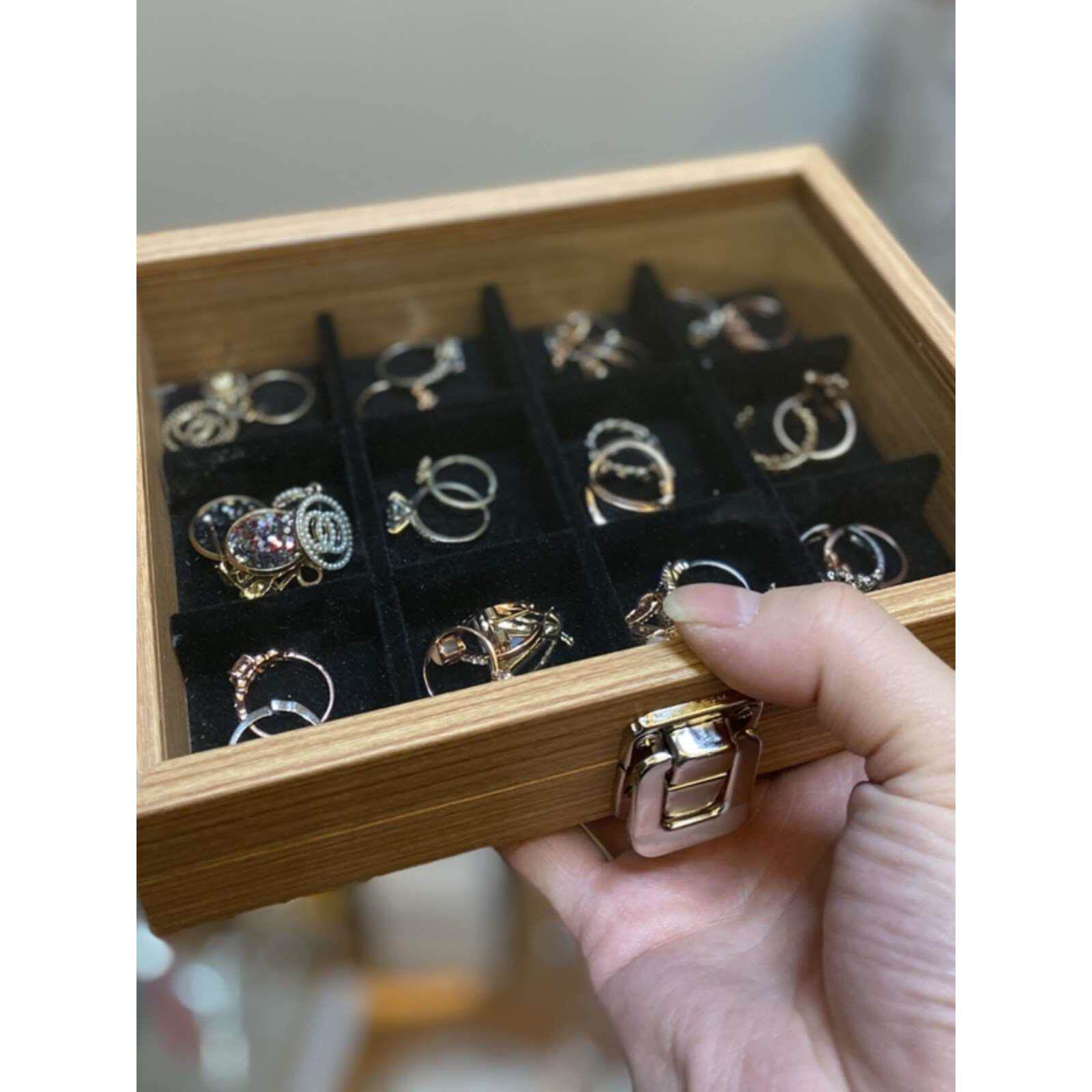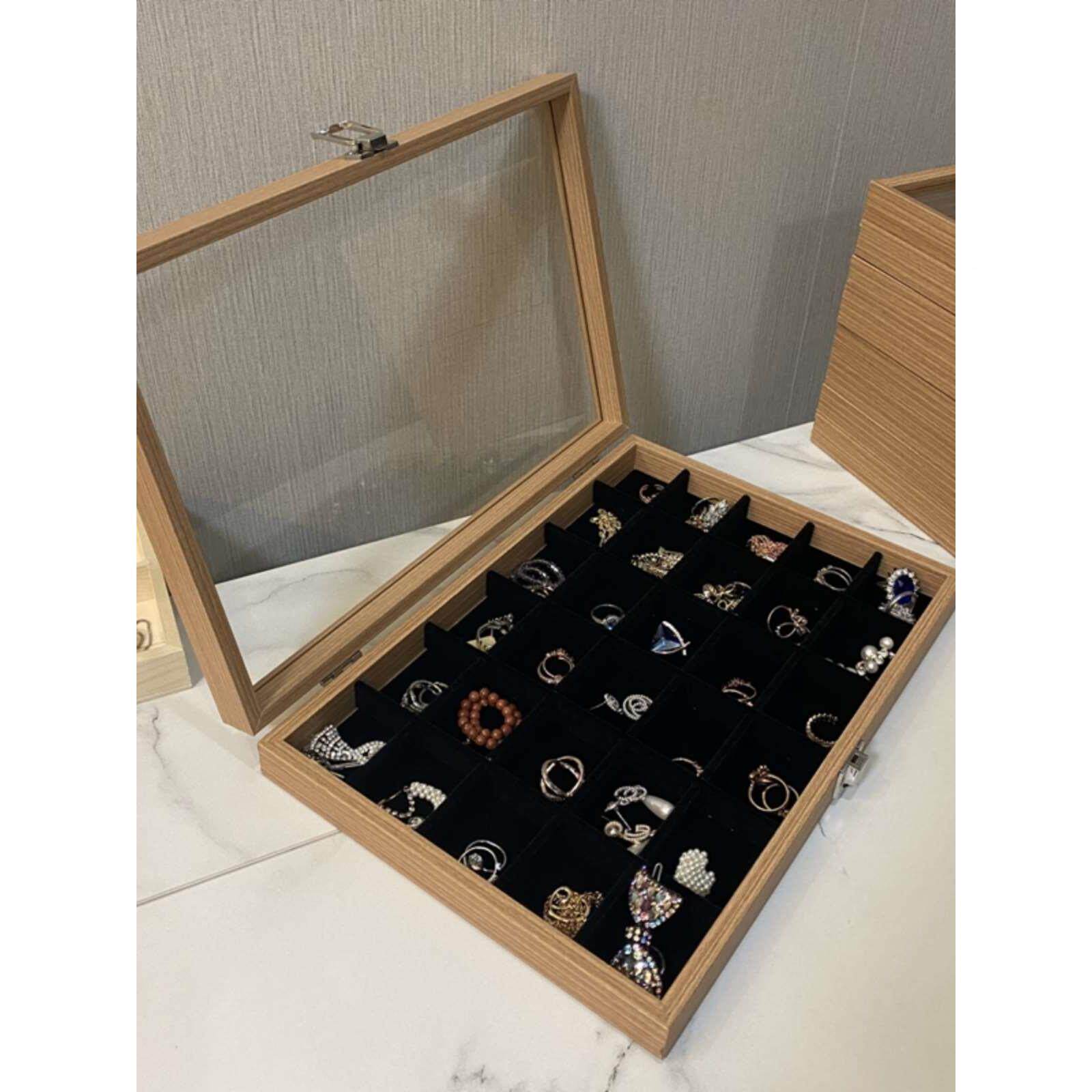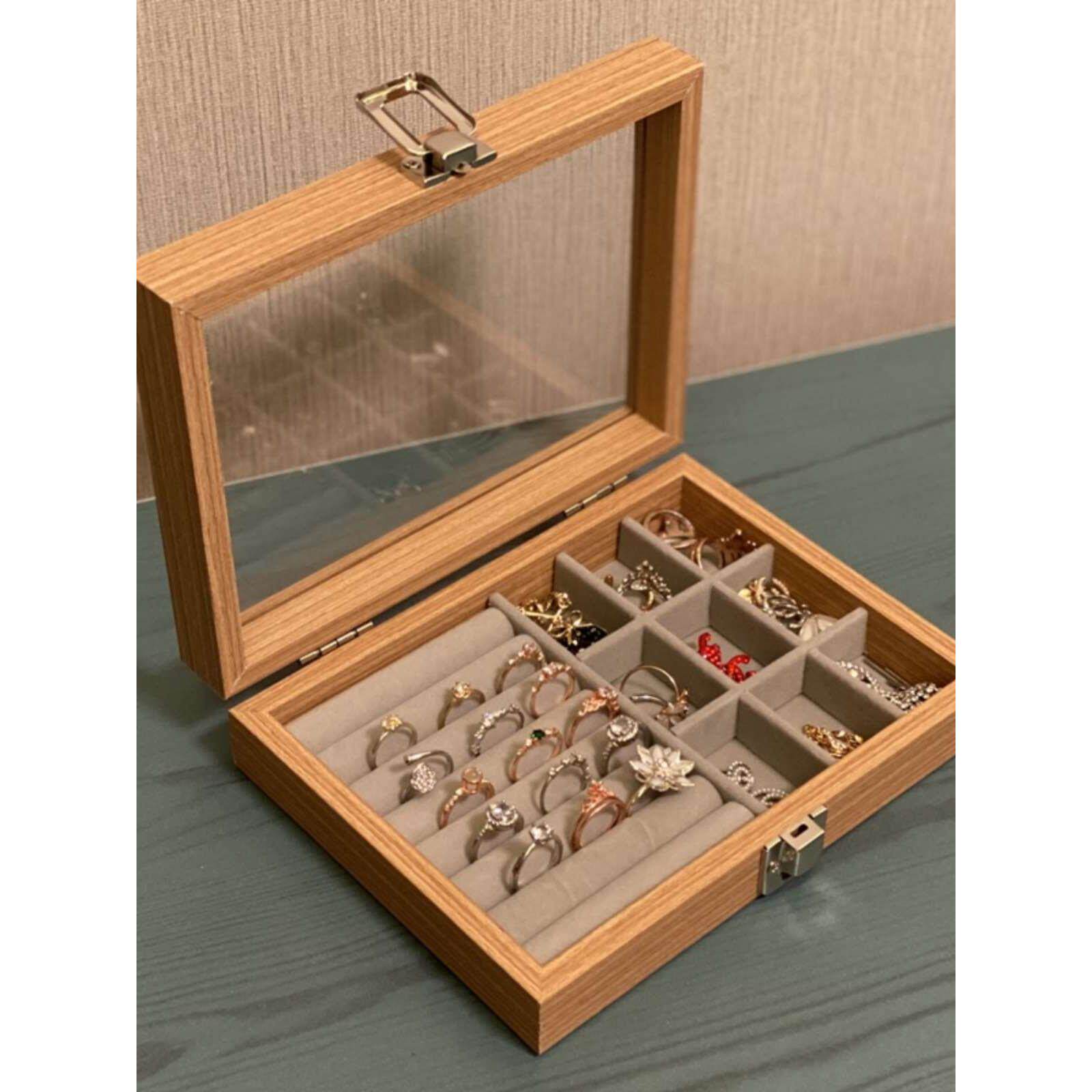 Кольцо, серьги, прозрачная коробочка для хранения, браслет