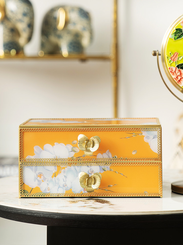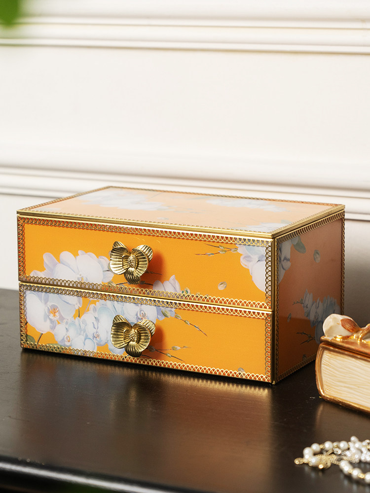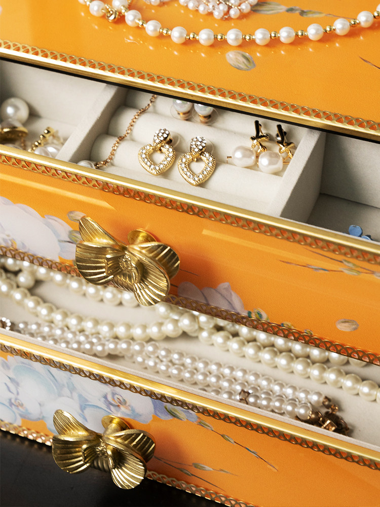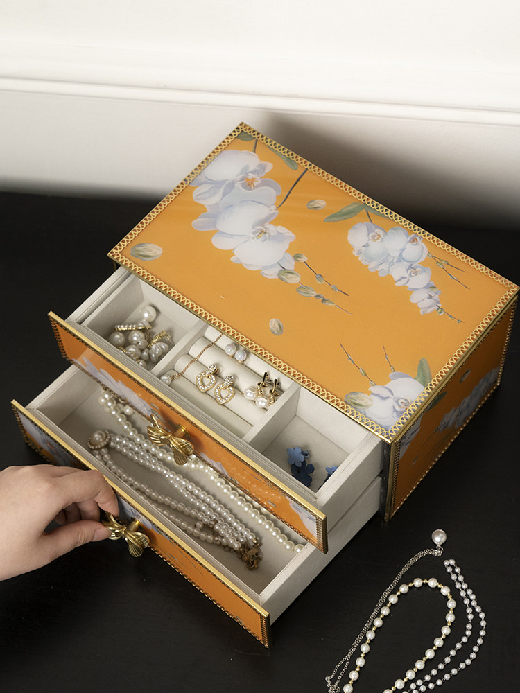 木南 Высококлассная вместительная и большая коробка для хранения, двухэтажная коробочка для хранения, серьги, ожерелье, туалетный столик, аксессуар, легкий роскошный стиль