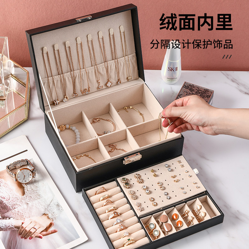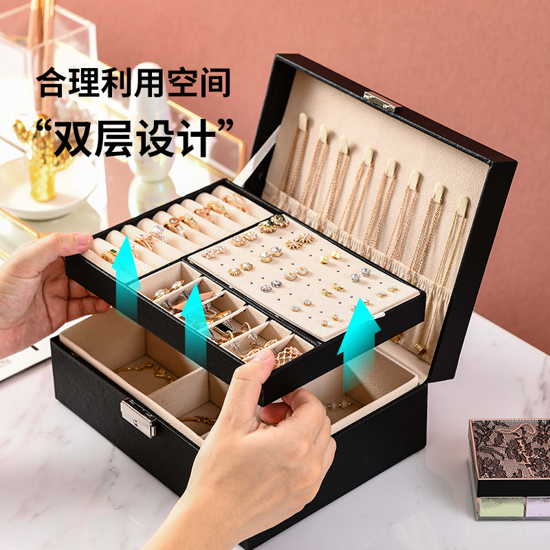 Вместительная и большая коробочка для хранения, серьги, ожерелье, цепочка, ювелирное украшение, аксессуар, высококлассная изысканная коробка для хранения, простой и элегантный дизайн, европейский стиль