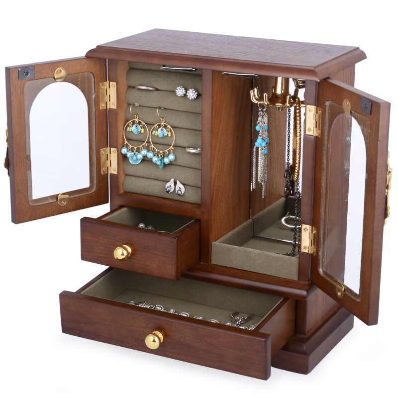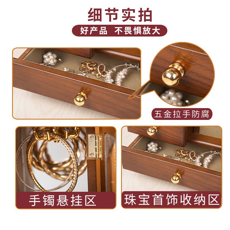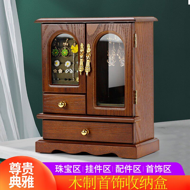 Ретро коробочка для хранения из натурального дерева, коробка для хранения, серьги, ожерелье, аксессуар для волос, кольцо, деревянная коробка