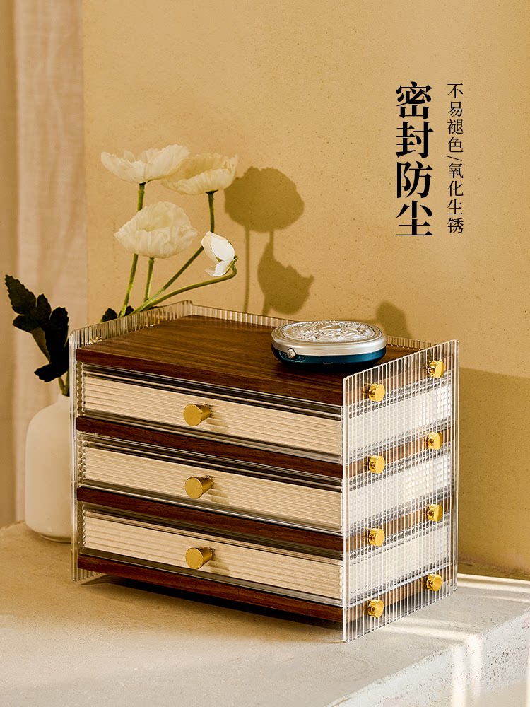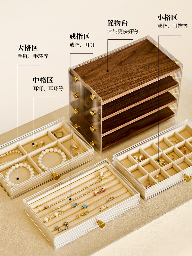 Деревянная акриловая изысканная коробочка для хранения, высококлассный вместительный и большой аксессуар, серьги, ожерелье, коробка для хранения