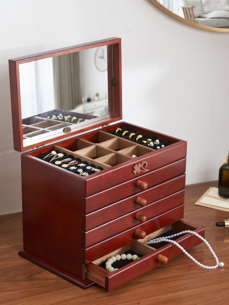 Деревянная коробочка для хранения, коробка для косметики, коробка для хранения, аксессуар для принцессы, ювелирное украшение, серьги, европейский стиль