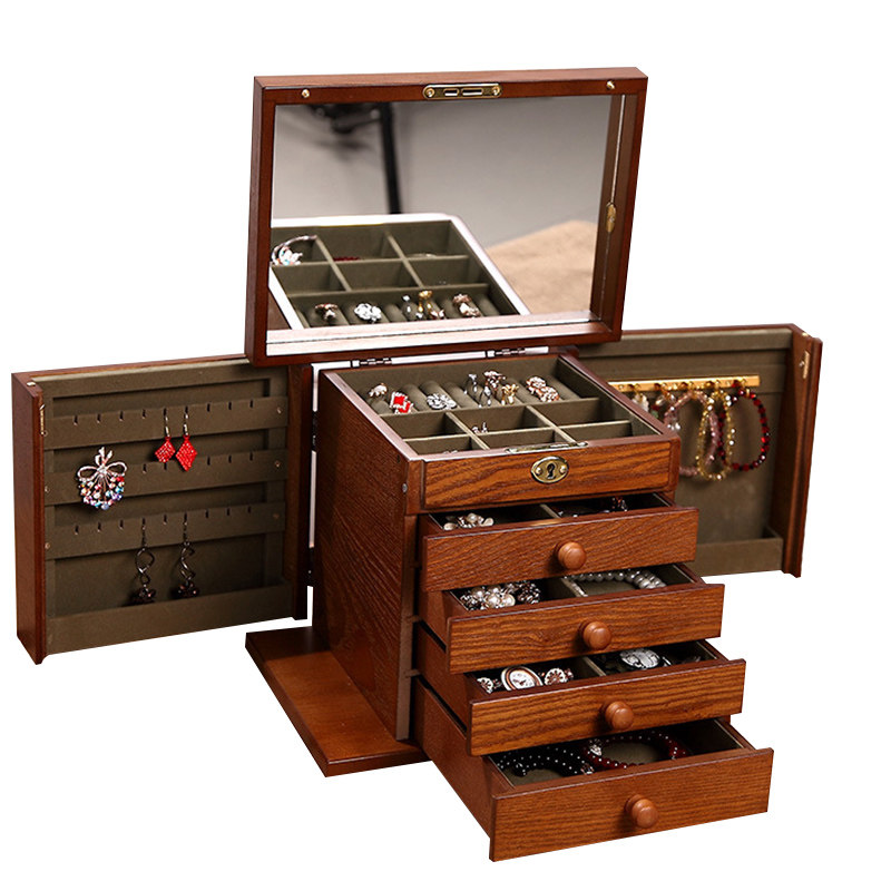 Коробка для косметики, деревянный ретро замок, вместительная и большая коробочка для хранения, деревянная коробка для хранения, простой и элегантный дизайн, китайский стиль