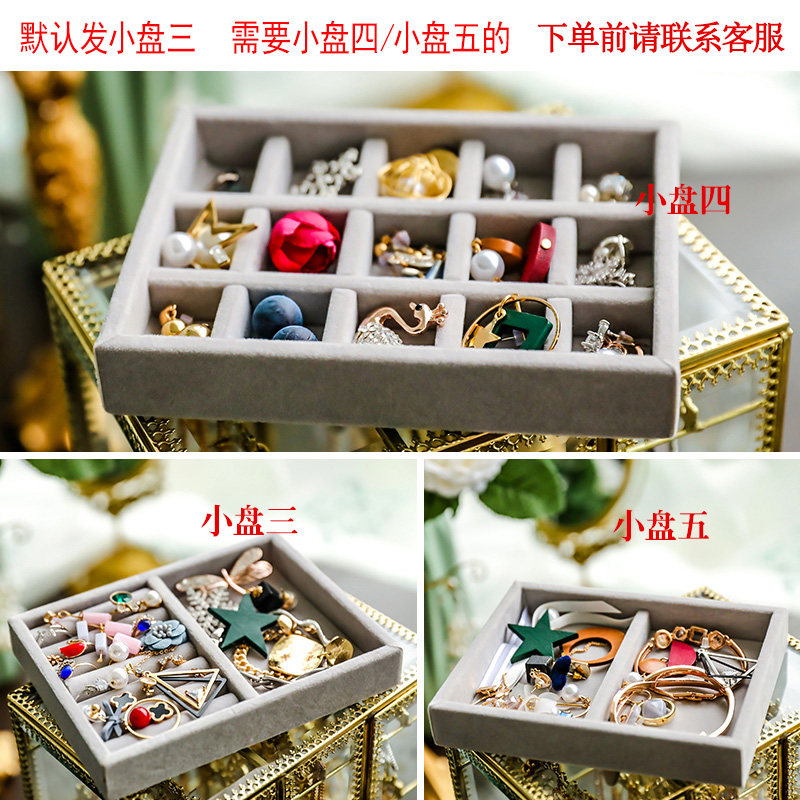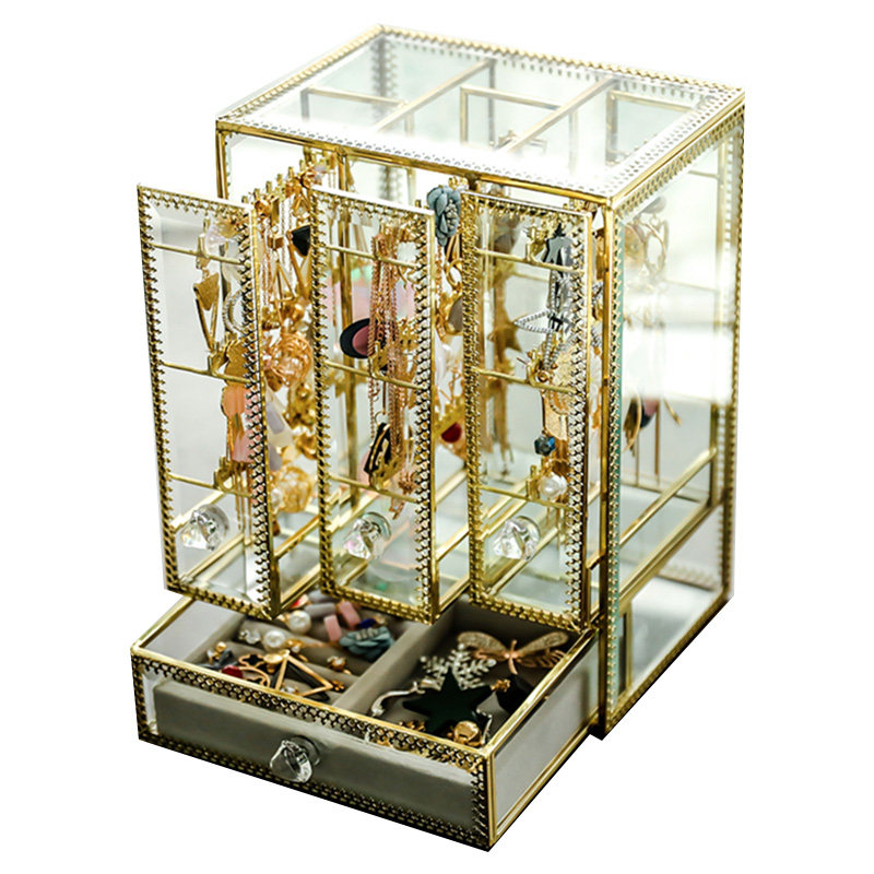 Золотое стеклянное ювелирное украшение, ретро коробочка для хранения, ожерелье, серьги