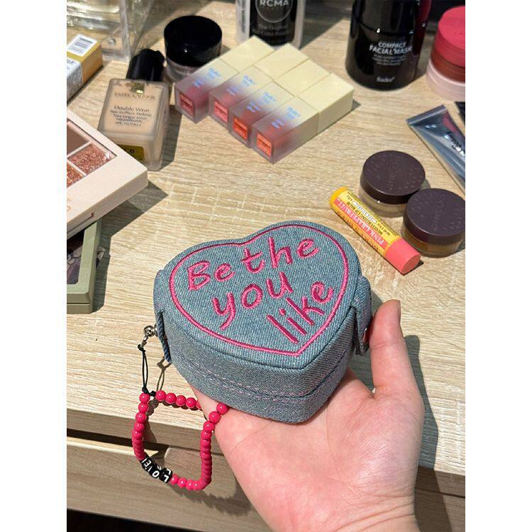 Маленькая ретро джинсовая коробочка для хранения в форме сердца, портативное кольцо, ювелирное украшение, система хранения для путешествий, серьги, подарок на день рождения