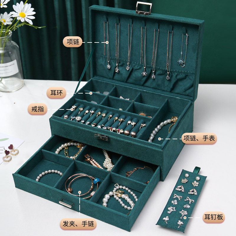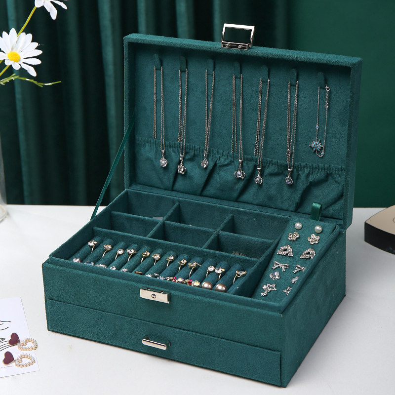 Зеленая вместительная и большая коробочка для хранения, серьги, кольцо, ожерелье, аксессуар, коробка