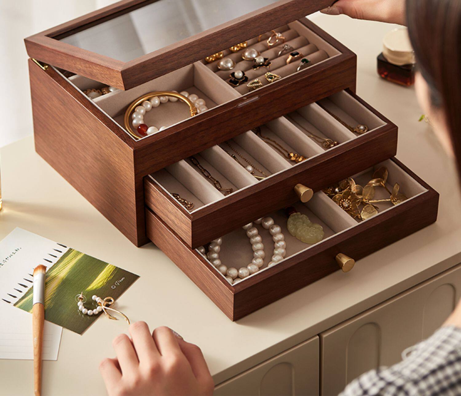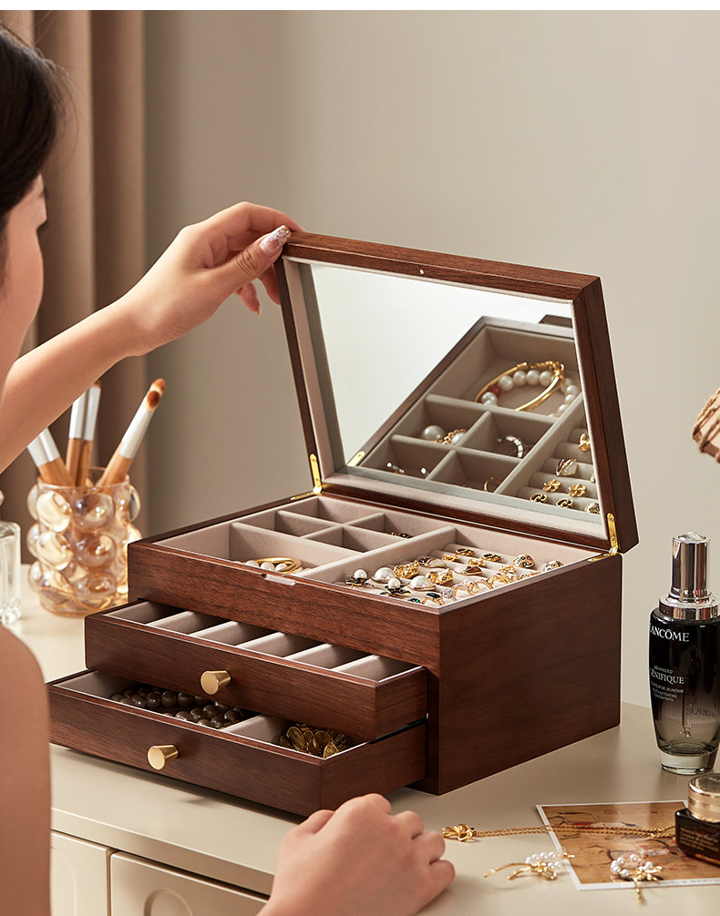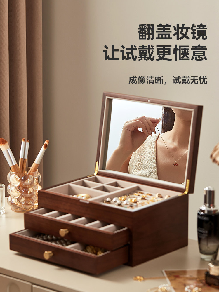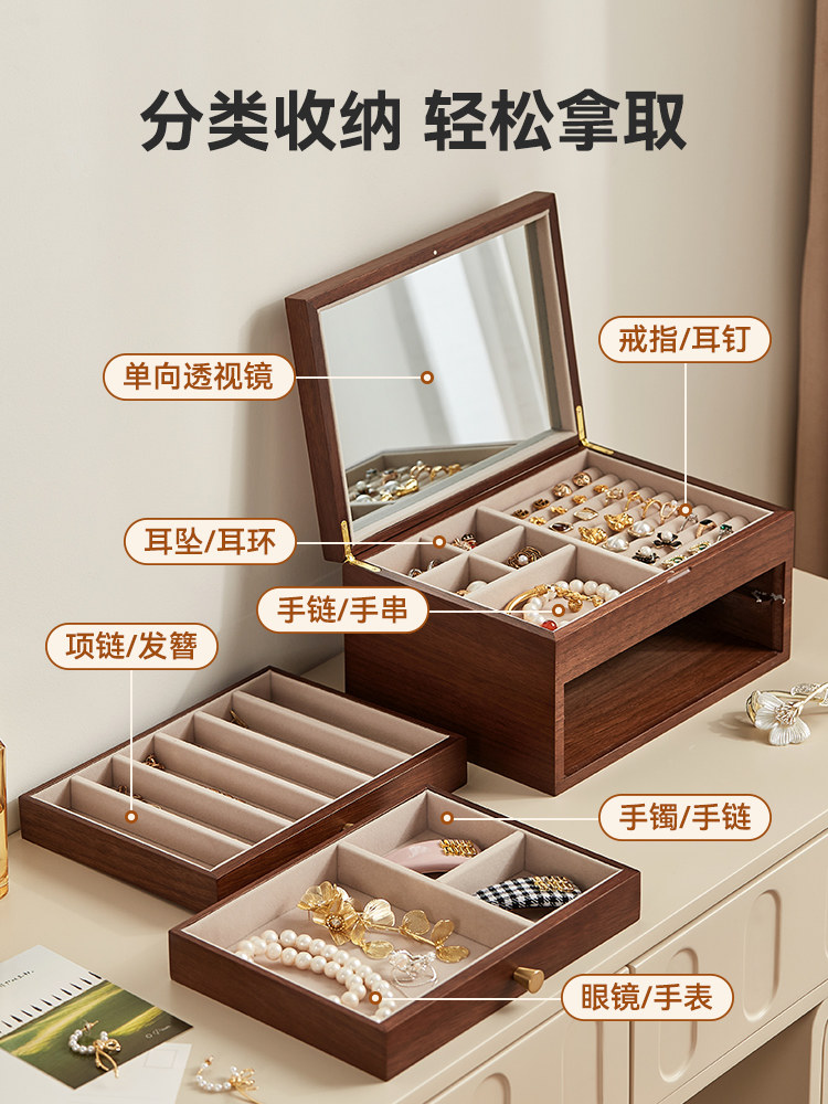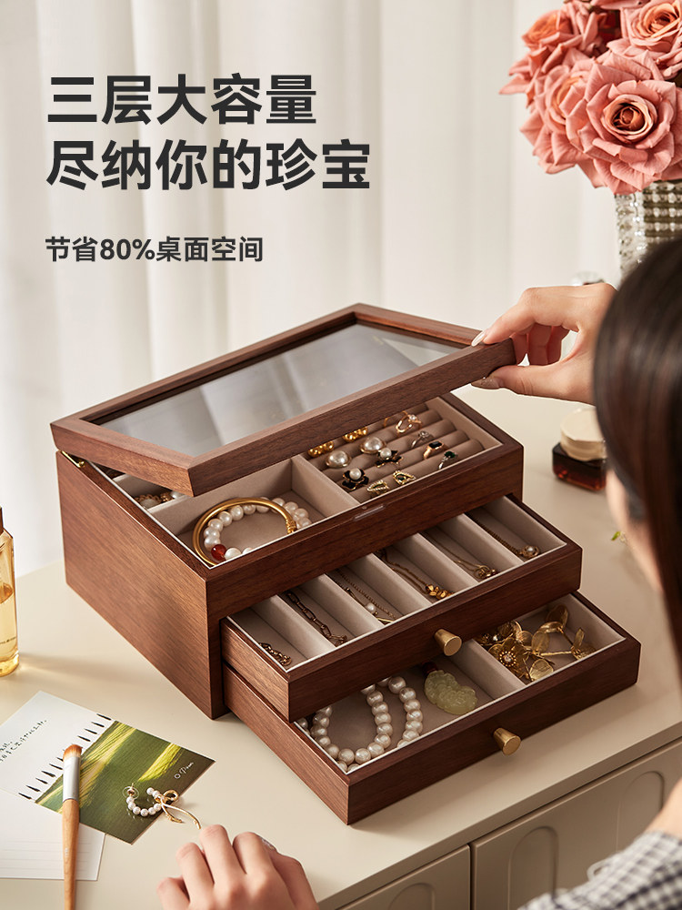 Деревянная коробочка для хранения, вместительное и большое ювелирное украшение, серьги, элитное кольцо, антиокислительная коробка для хранения, подарок на день рождения