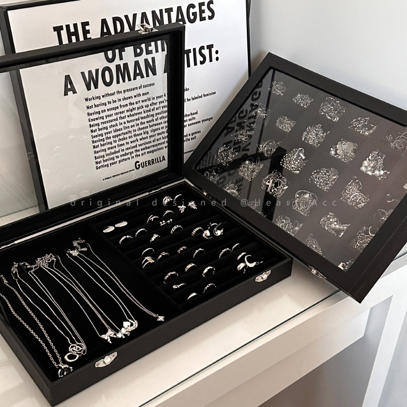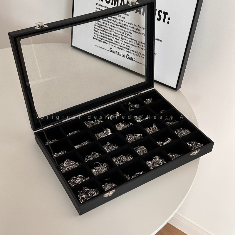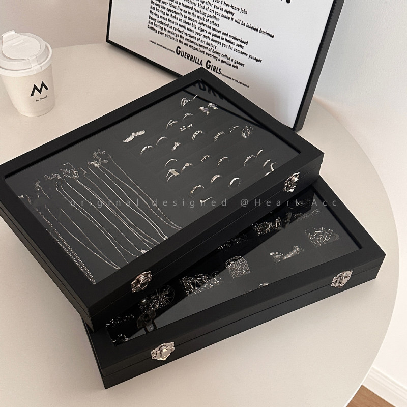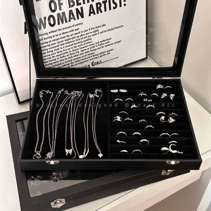 Черная прозрачная коробочка для хранения, ожерелье, кольцо, серьги, вместительная и большая коробка для хранения, аксессуар, изысканный стиль