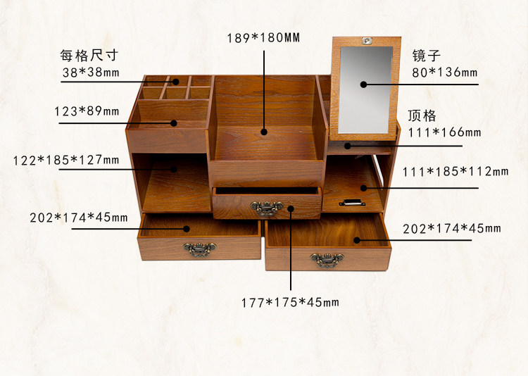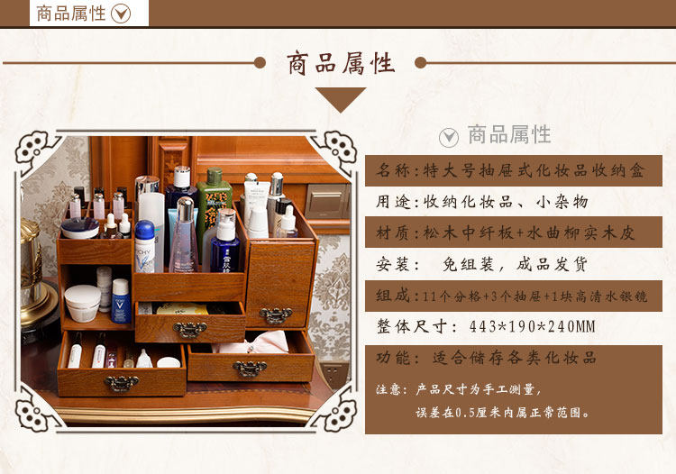 Очень большая настольная деревянная коробка для хранения, зеркало, туалетный столик