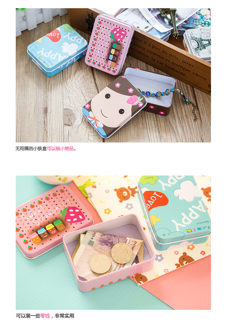 Мультяшная маленькая коробка для хранения, жестяная коробка, заколка для волос, серьги, карточки, подарок на день рождения