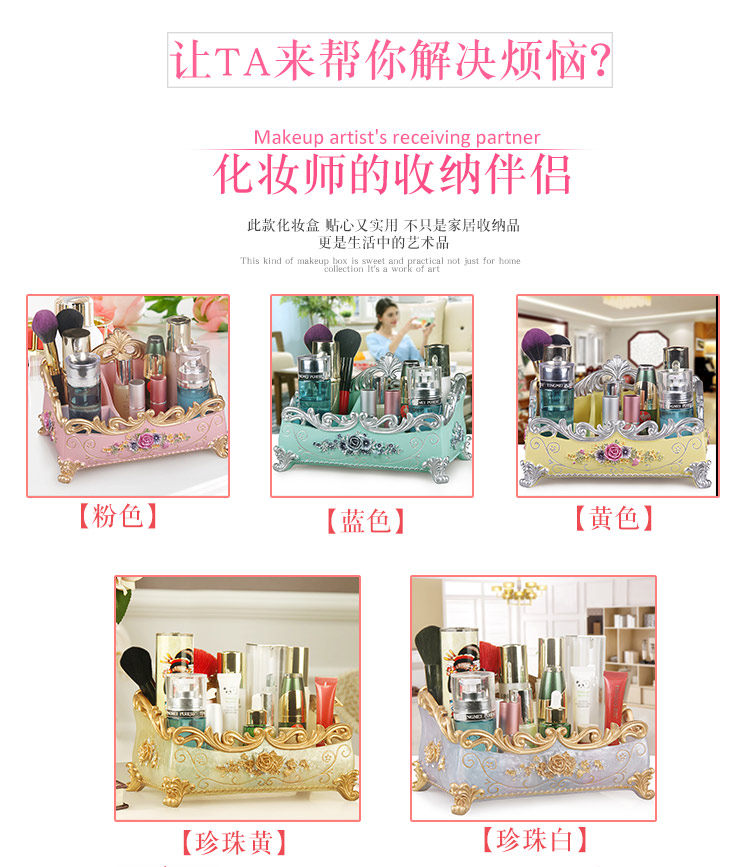 Косметическая высококлассная коробка для хранения, настольная креативная коробочка для хранения, коробка для косметики, база под макияж, комплект, европейский стиль, изысканный стиль