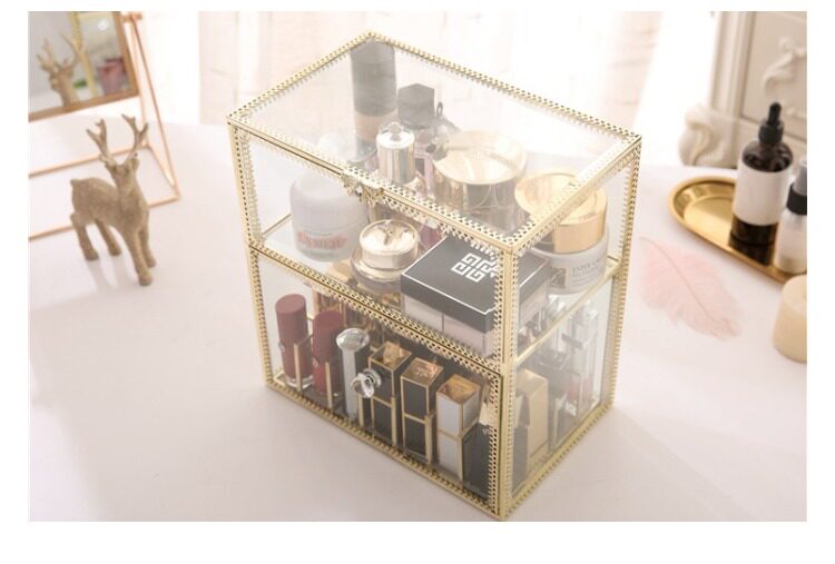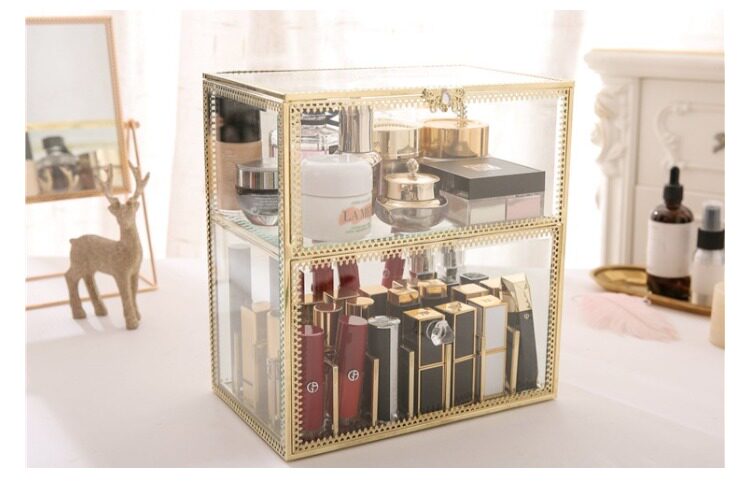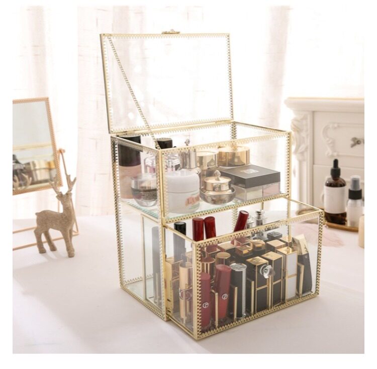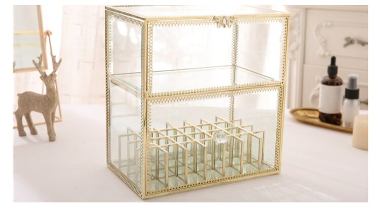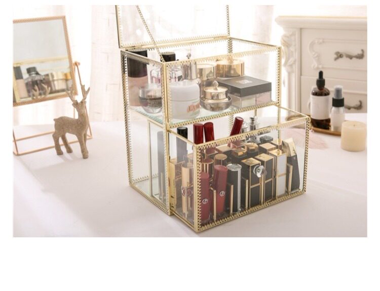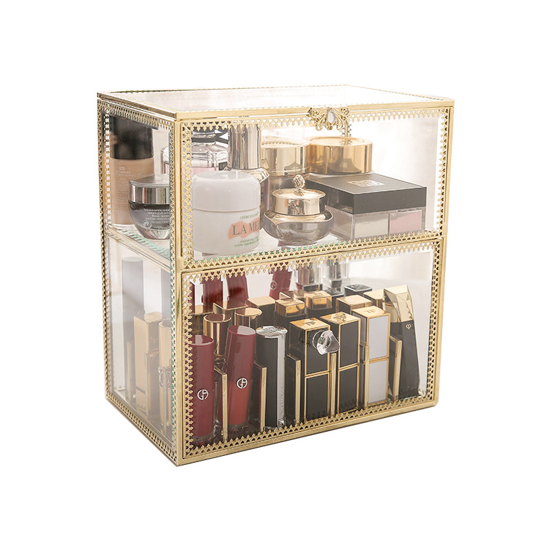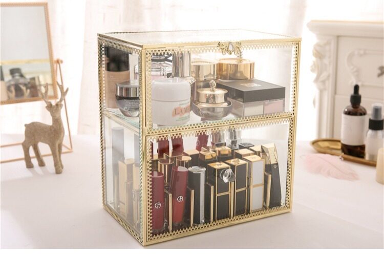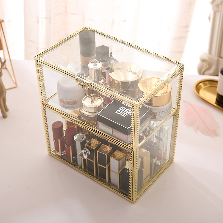 Ретро стеклянная помада, блеск для губ, золотая медная коробка для хранения, коробка для косметики, косметические настольные духи, европейский стиль