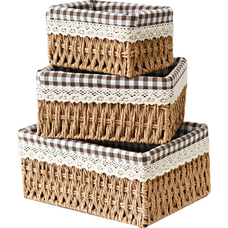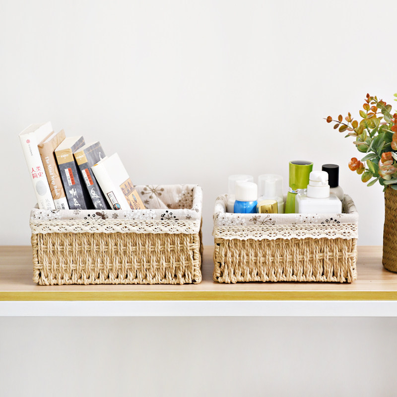 Экологичная плетеная настольная коробка для хранения, корзина для хранения