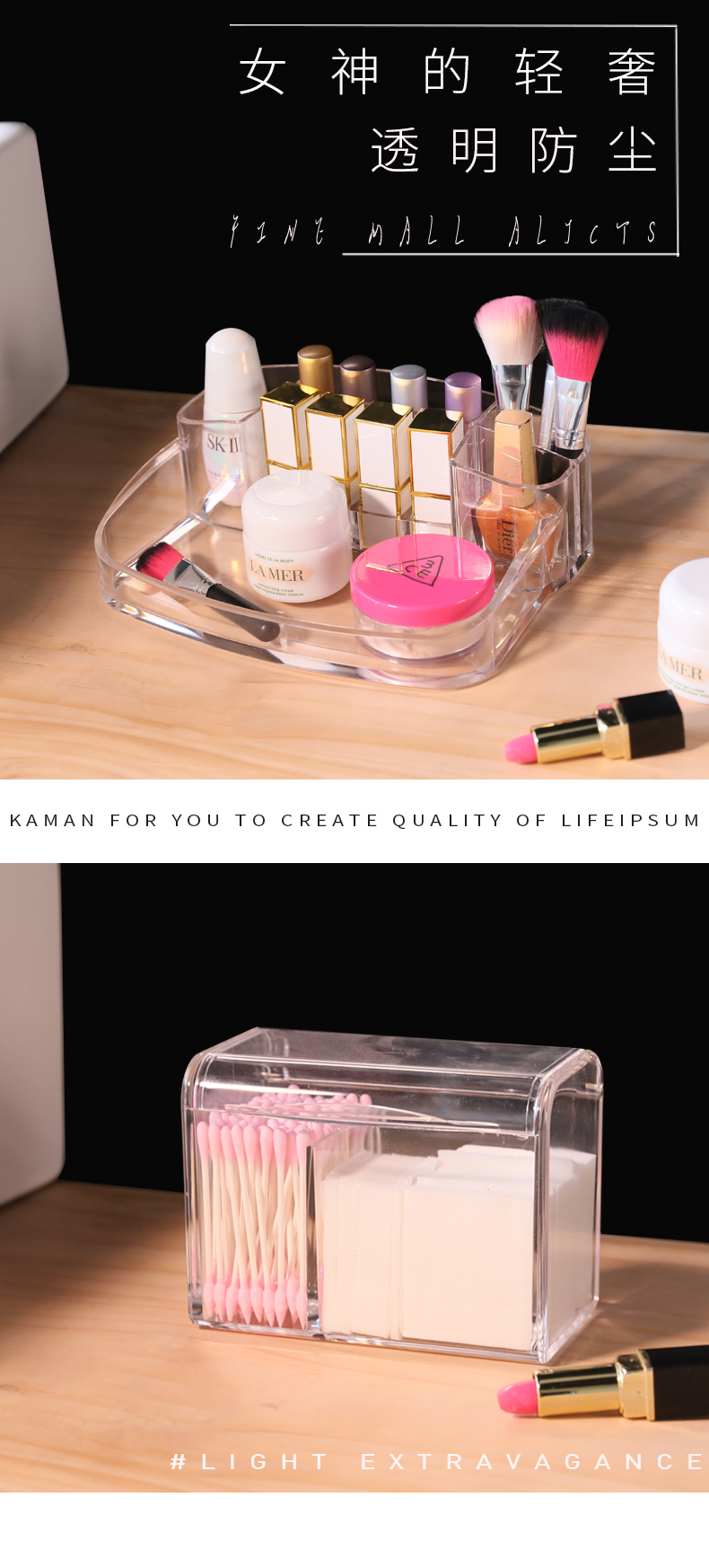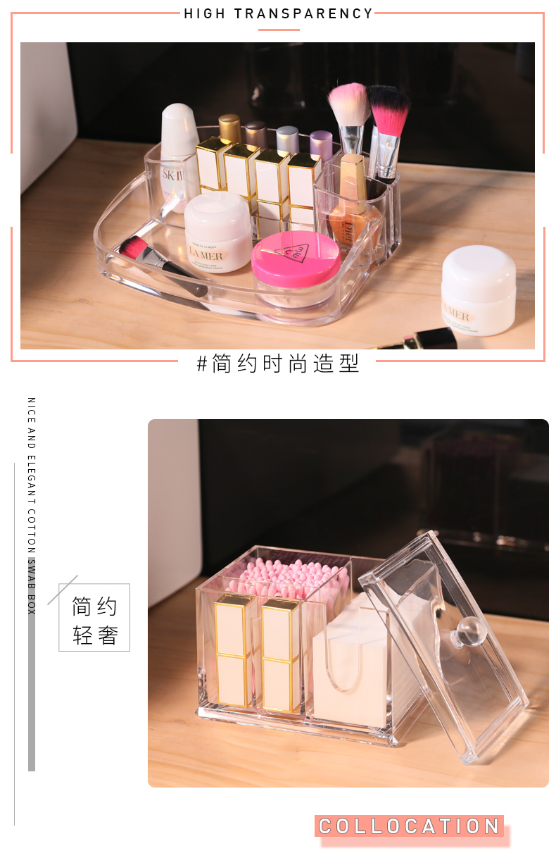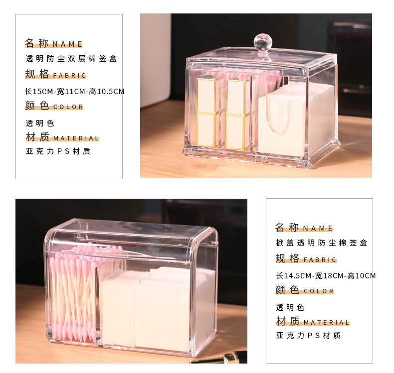 Прозрачная косметическая коробка для хранения, акриловая маска для лица, ватные палочки, ватные диски, туалетный столик, пылезащитные хлопковые салфетки