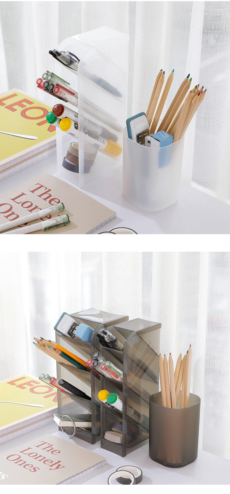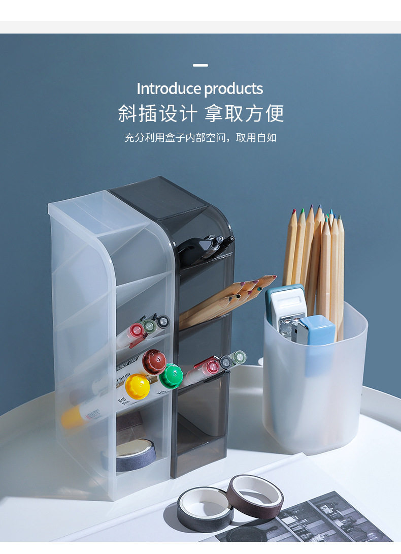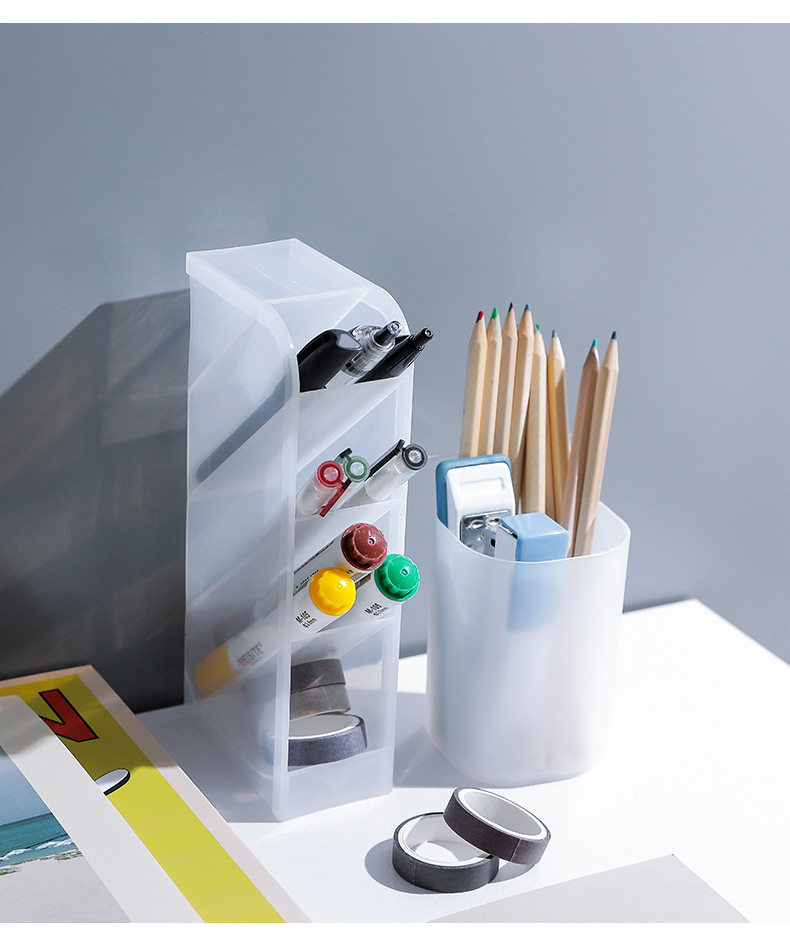 Настольная прозрачная коробка для хранения, матовый держатель для ручек, универсальные канцтовары, кисть, помада, система хранения