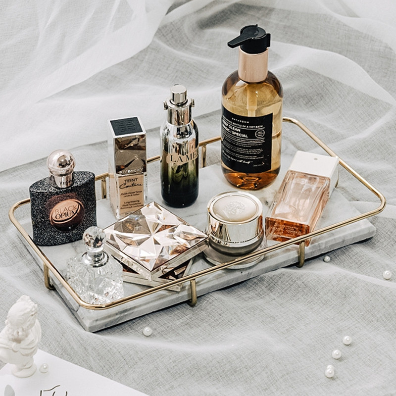 Натуральный мраморный прямоугольный косметический туалетный столик, духи, система хранения