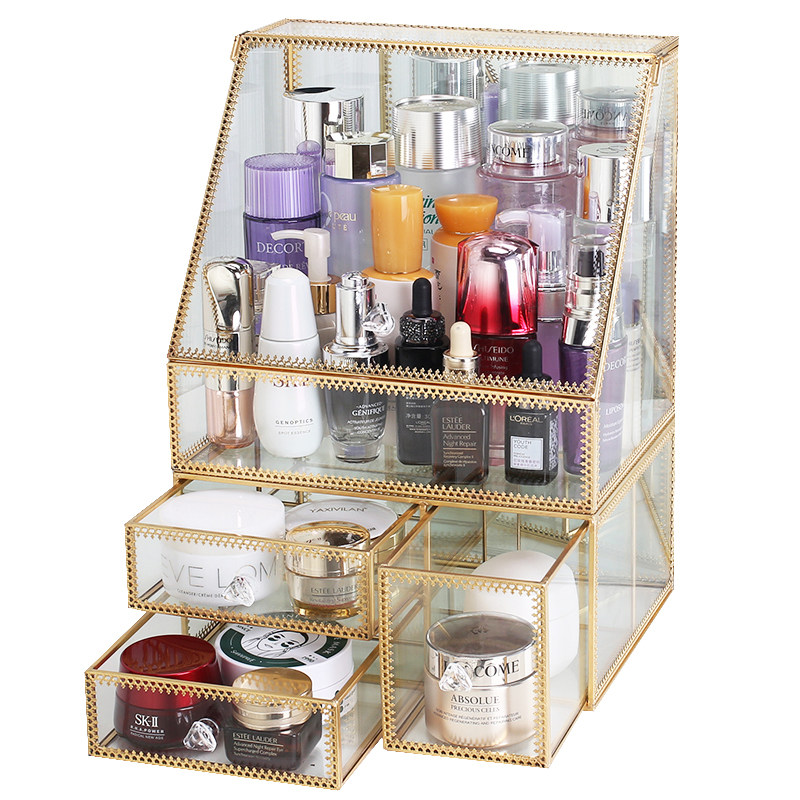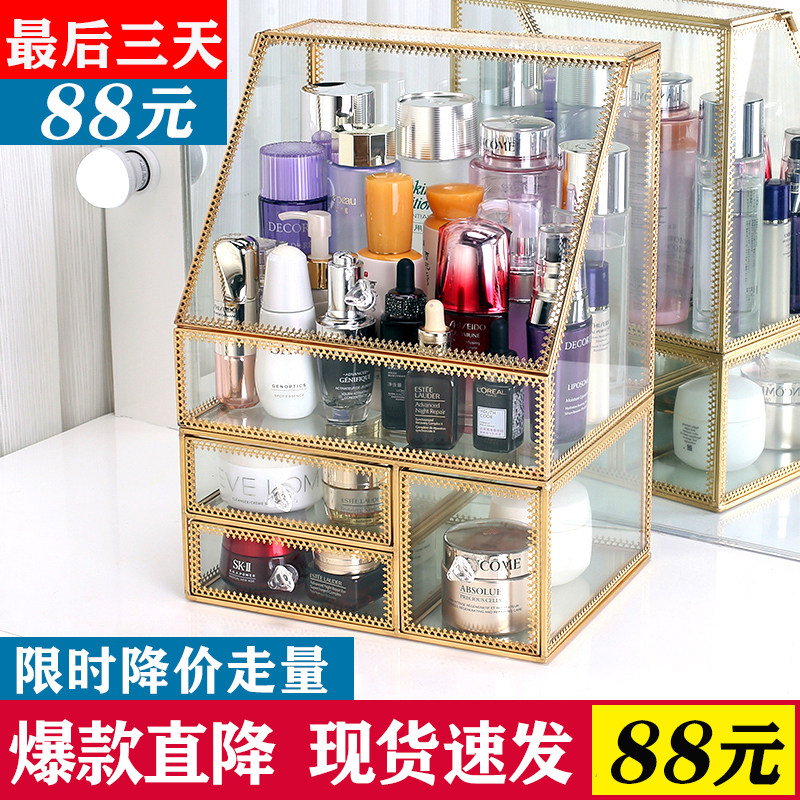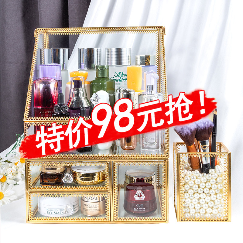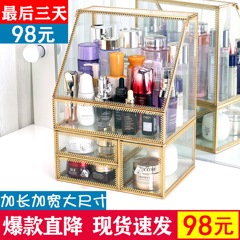 Косметическая коробка для хранения, туалетный столик, помада, кисть, настольная стеклянная вместительная и большая пылезащитная щетка для ухода за кожей, популярно в интернете
