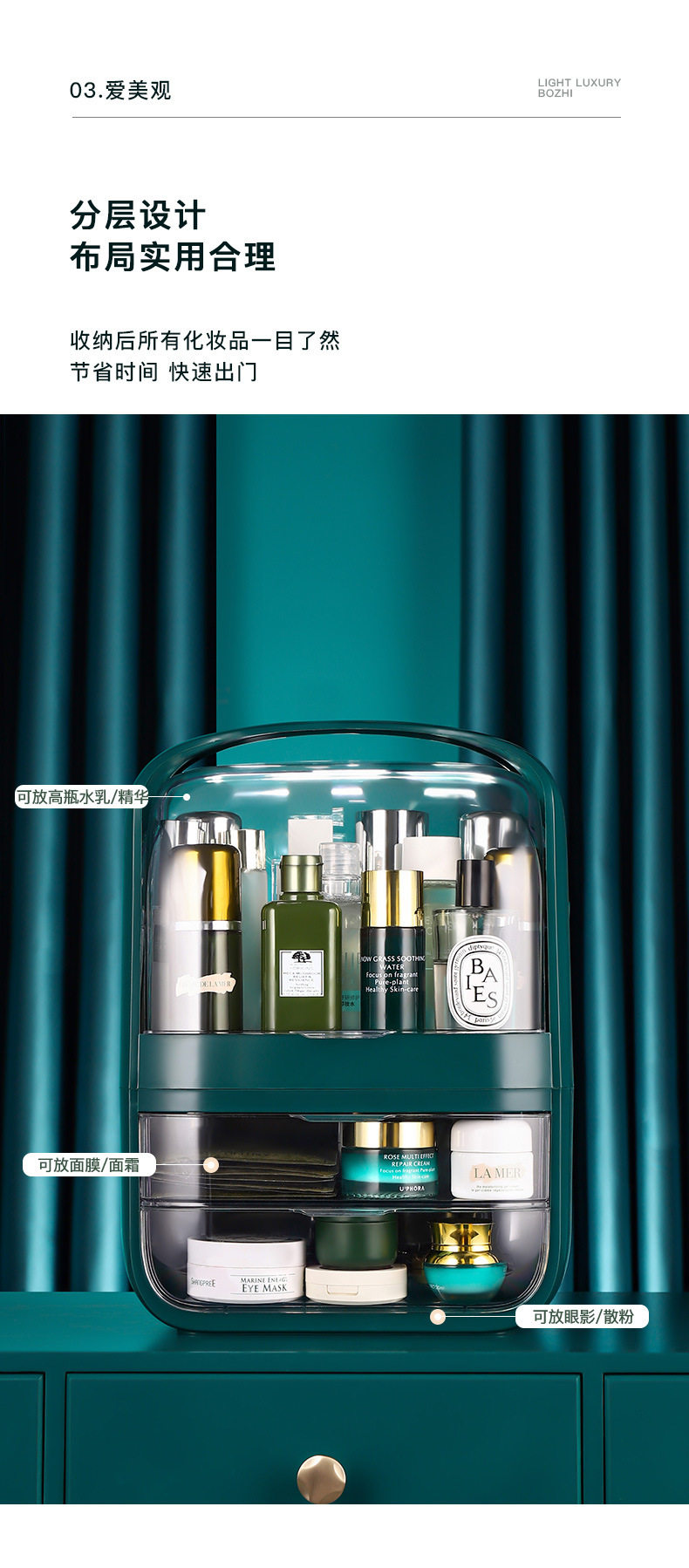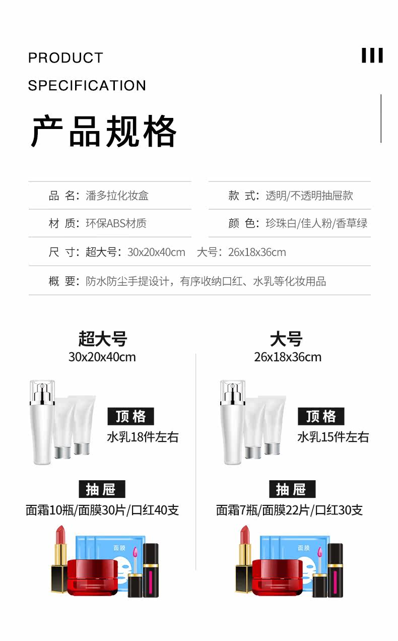 Pandora, косметическая настольная коробка для хранения, вместительная и большая маска для лица, туалетный столик для ухода за кожей