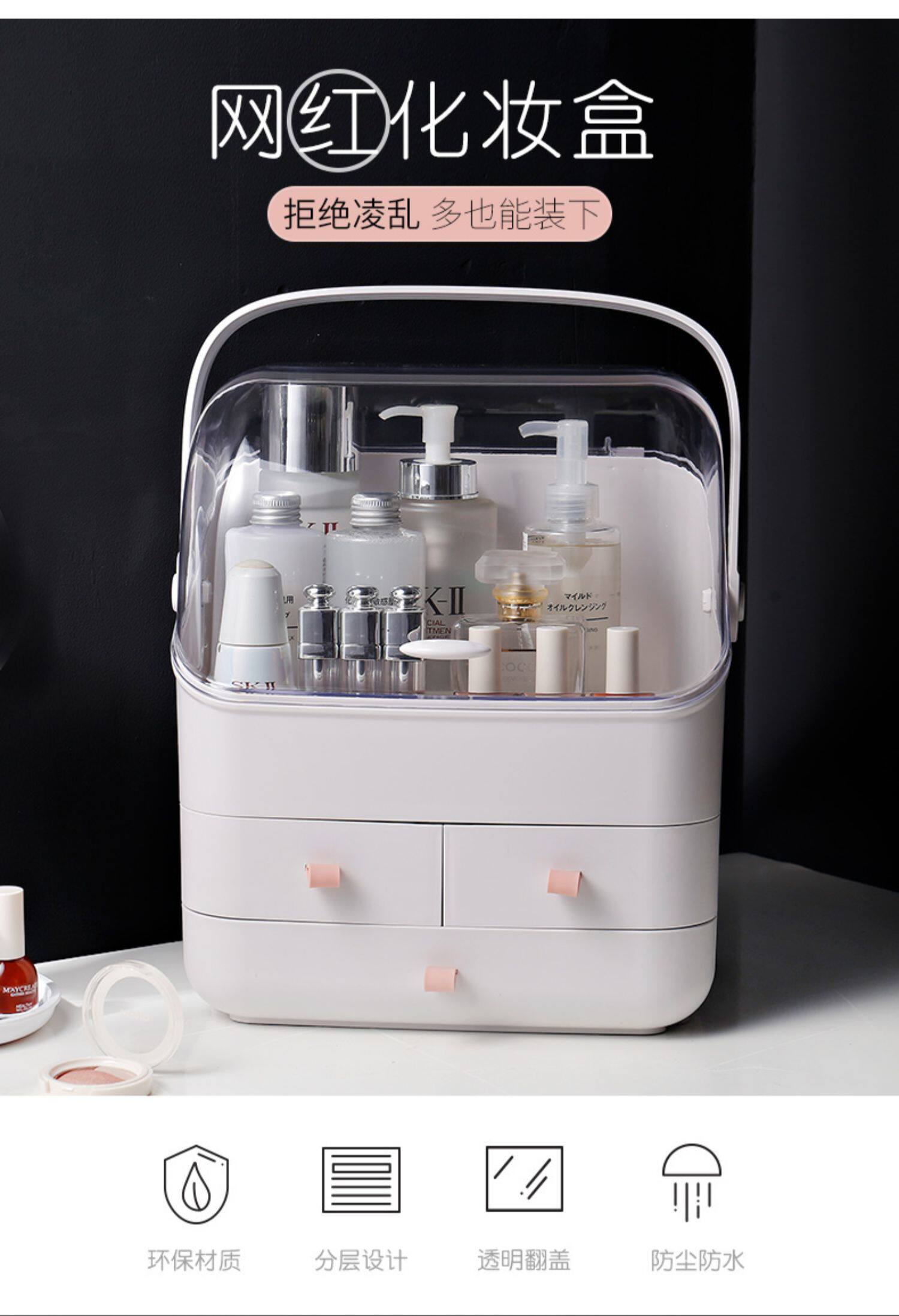 Косметическая вместительная и большая коробка для хранения, туалетный столик для ухода за кожей, помада, система хранения, коробка для косметики, популярно в интернете