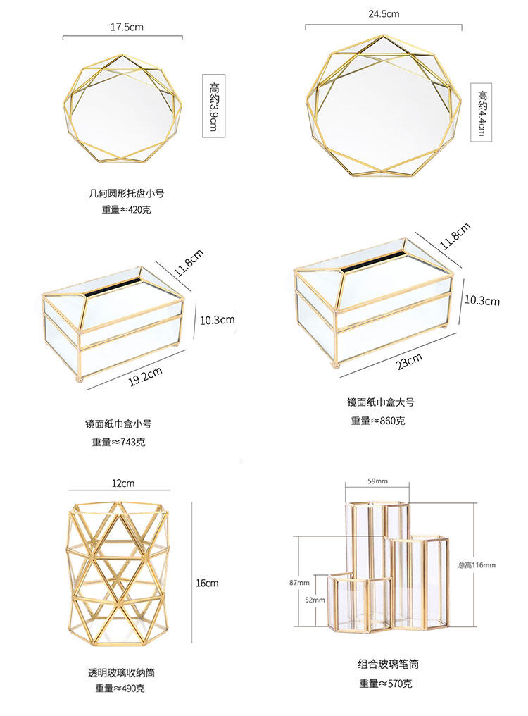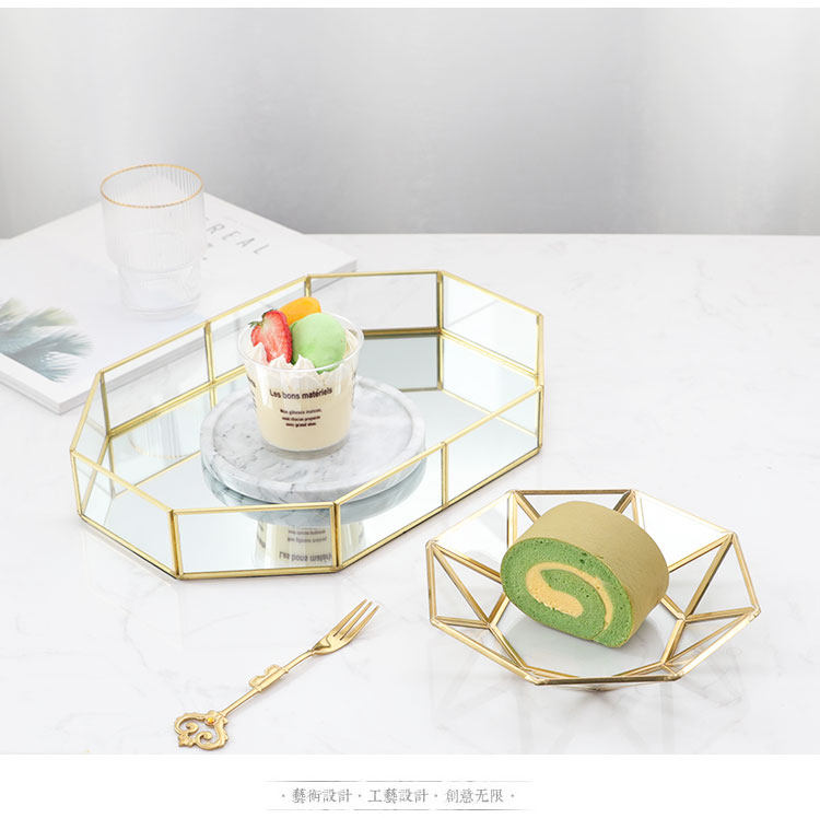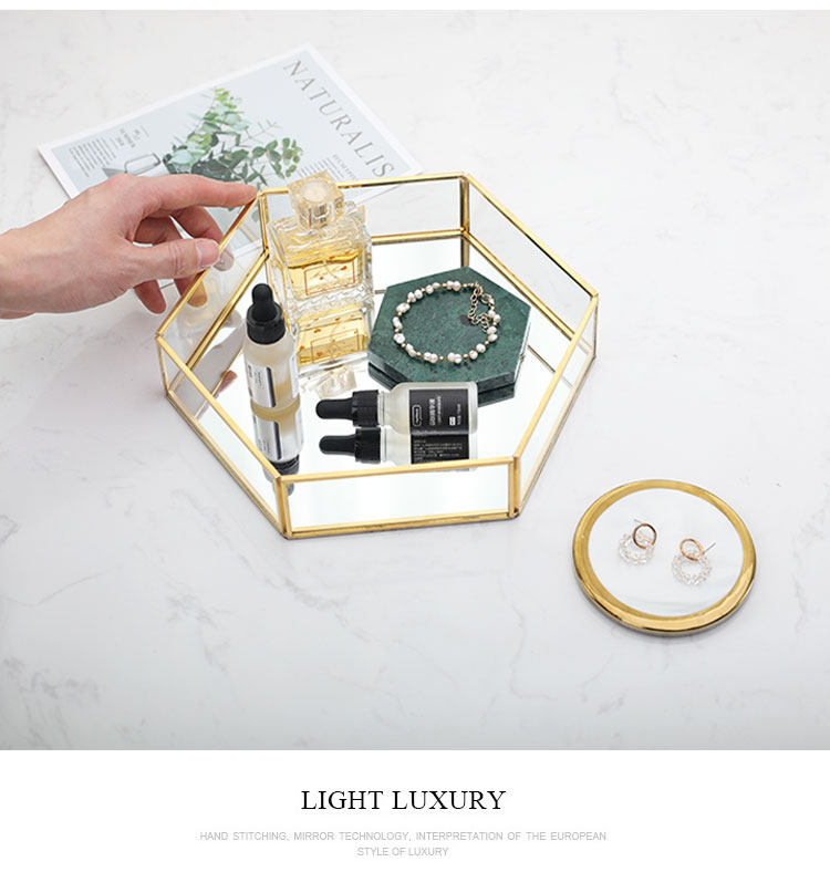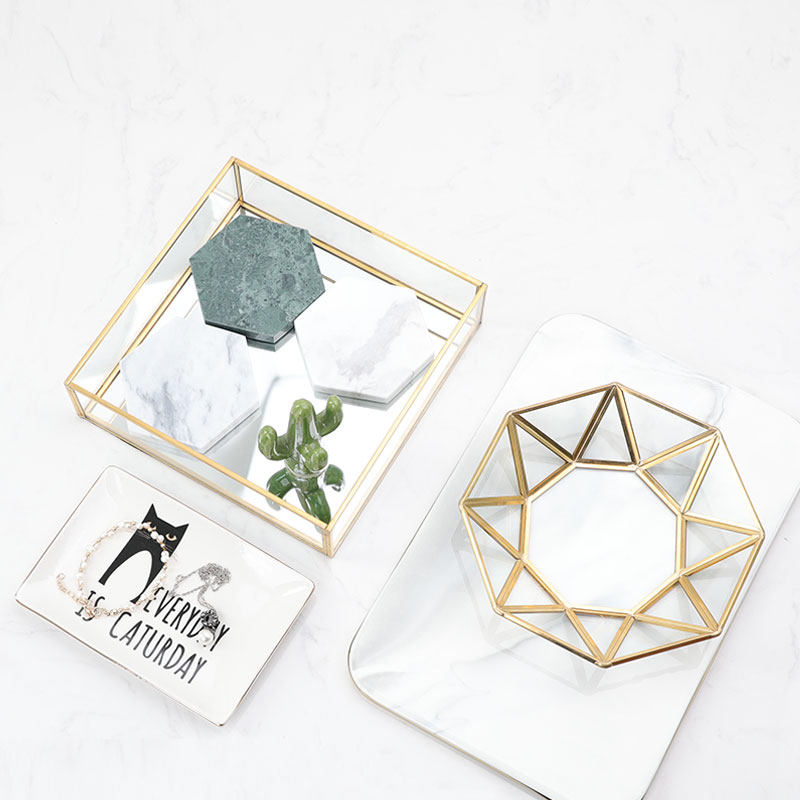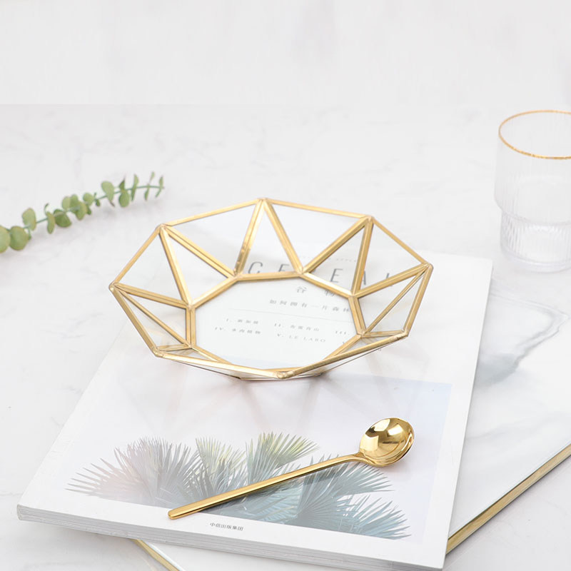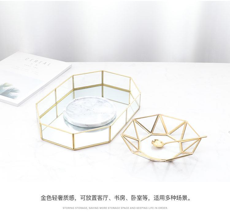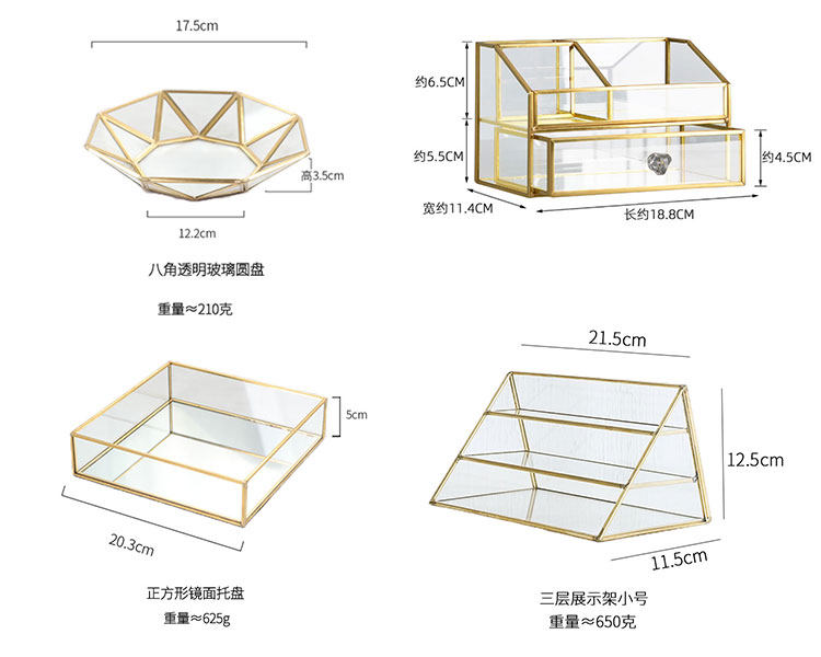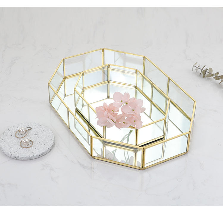 Золотой стеклянный стенд, коробка для хранения, декор, скандинавский стиль, зеркальный эффект