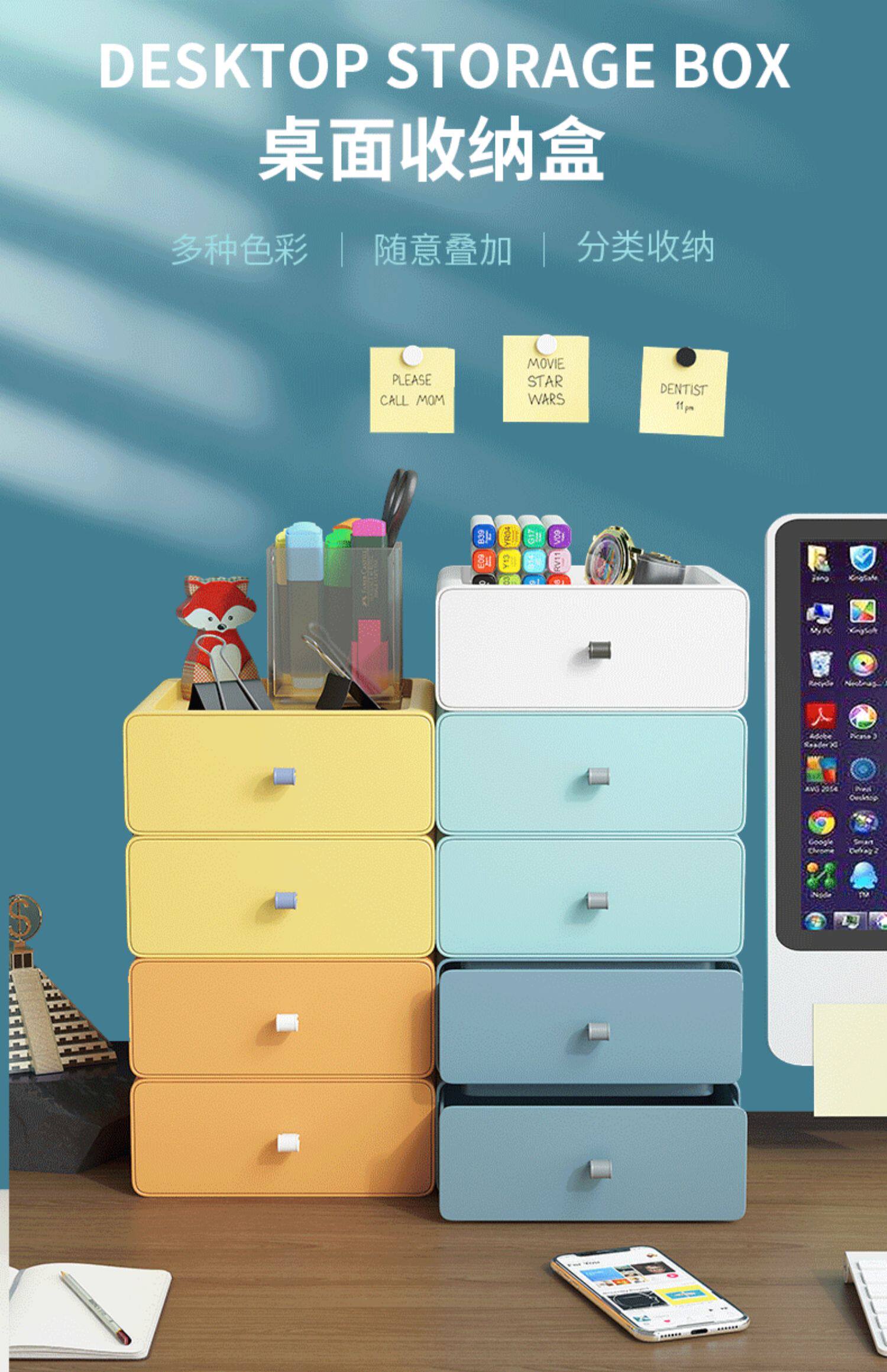 Офисный настольный ящик для хранения ящика многослойной инспирты студенческих канцелярских товаров для хранения канцелярских канцелярских принадлежностей Маленькая коробка организатор