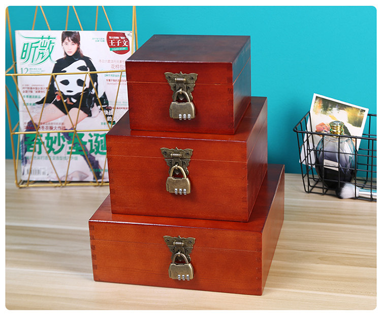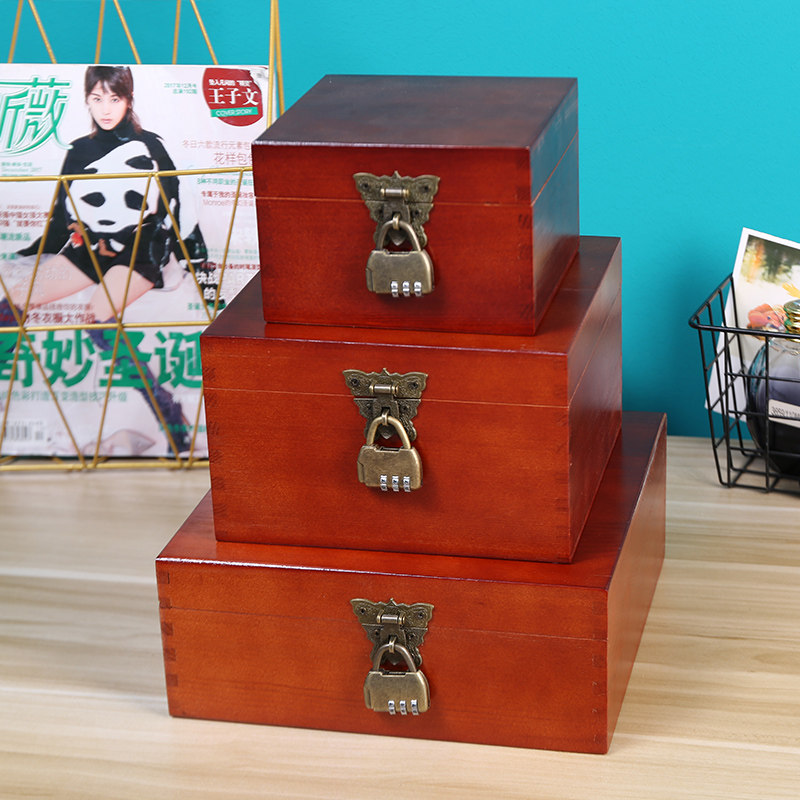 Ретро красная деревянная коробка, коробка для хранения, ящик для хранения