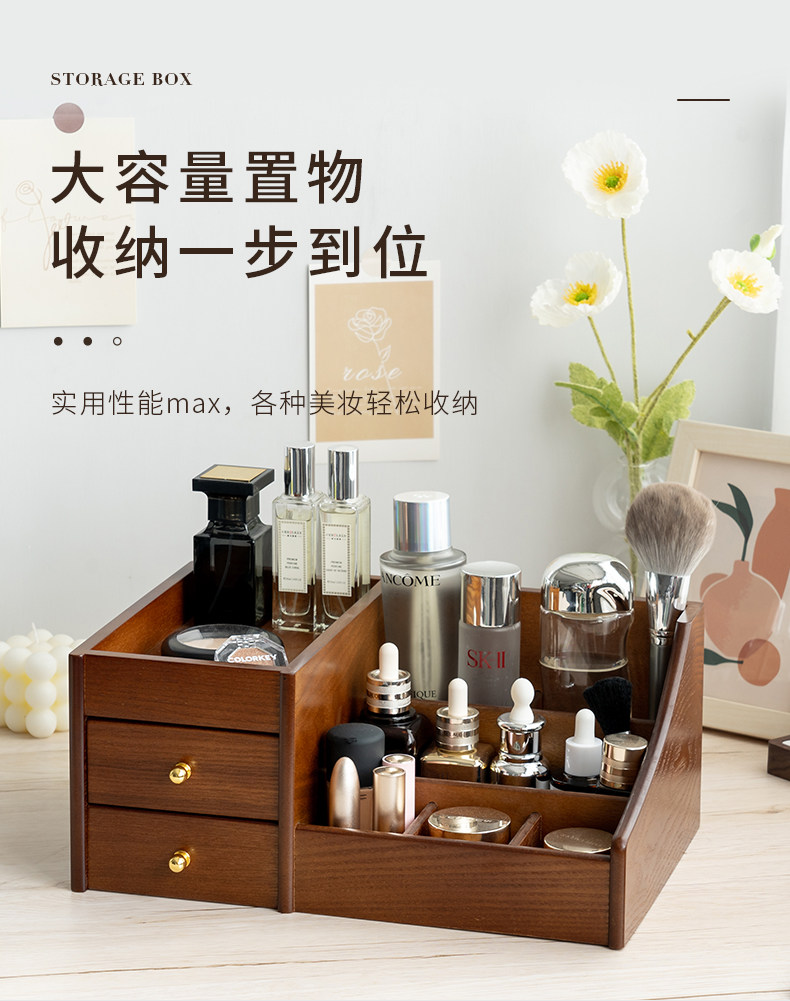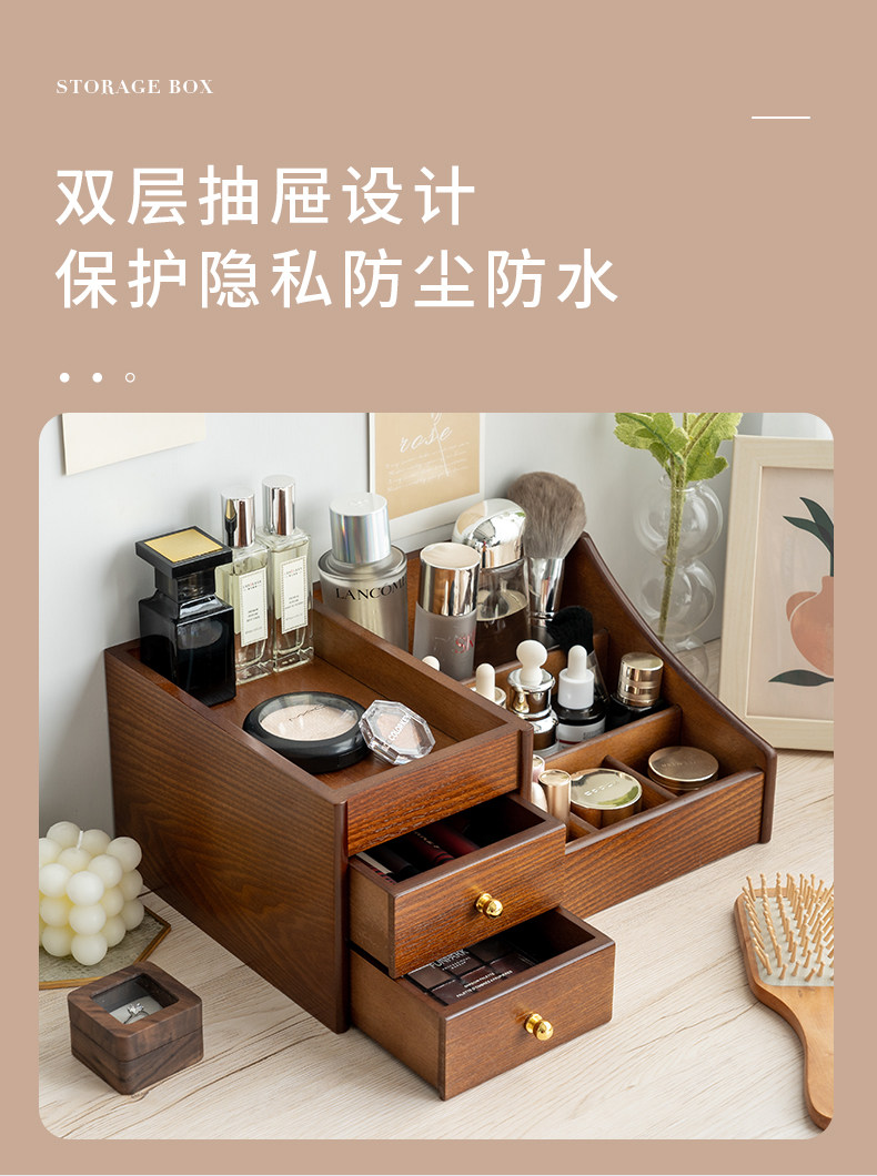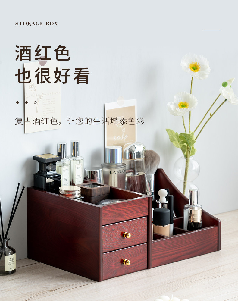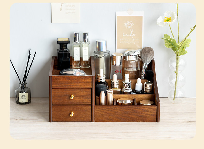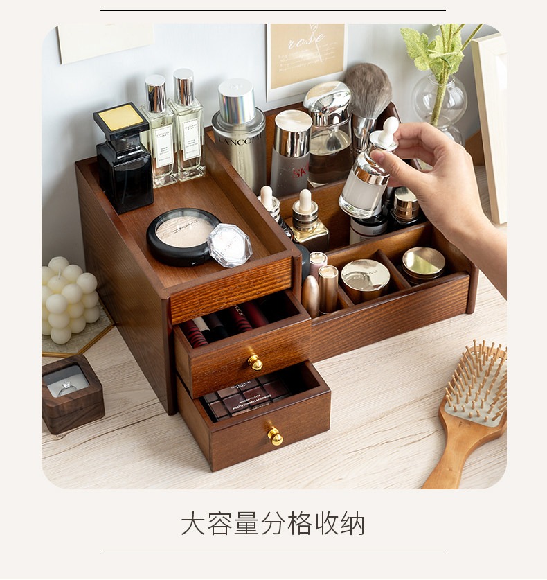 Деревянная косметическая коробка для хранения для ухода за кожей, помада, маска для лица, туалетный столик, система хранения