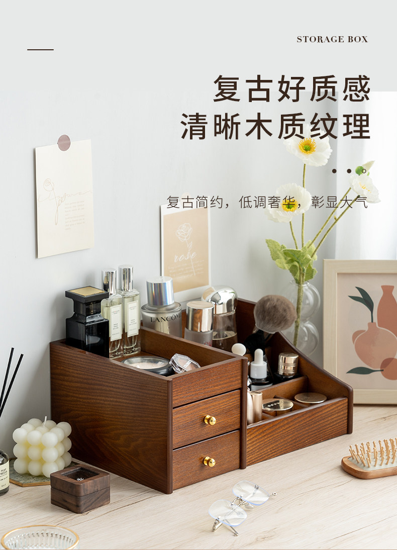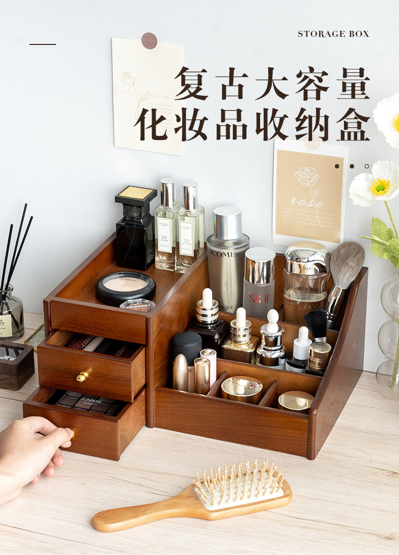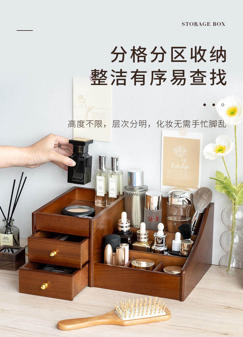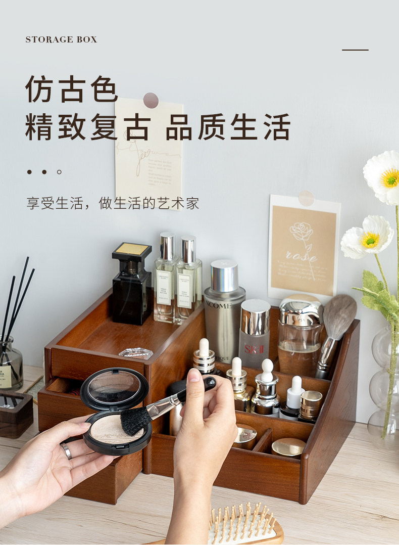 Деревянная косметическая коробка для хранения для ухода за кожей, помада, маска для лица, туалетный столик, система хранения
