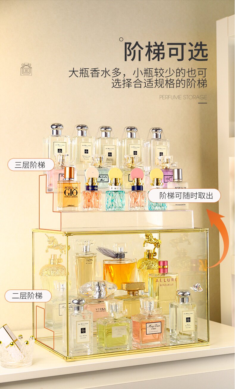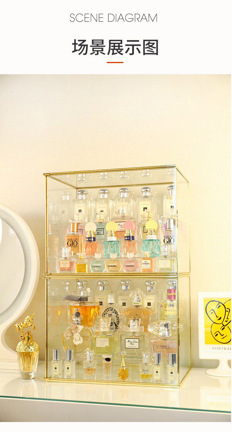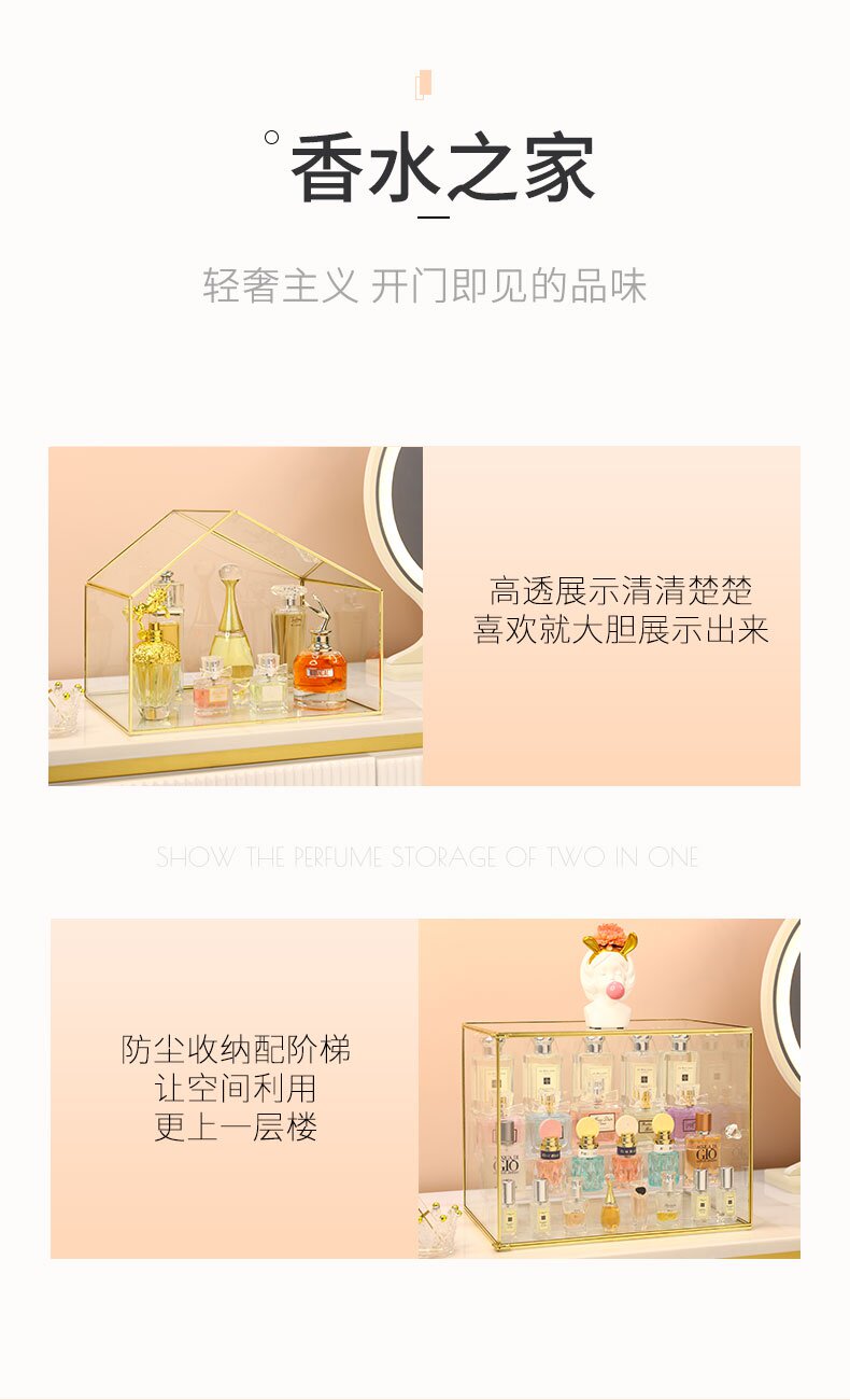 Духи, косметический стенд, коробка для хранения, стеклянная настольная помада, туалетный столик, легкий роскошный стиль