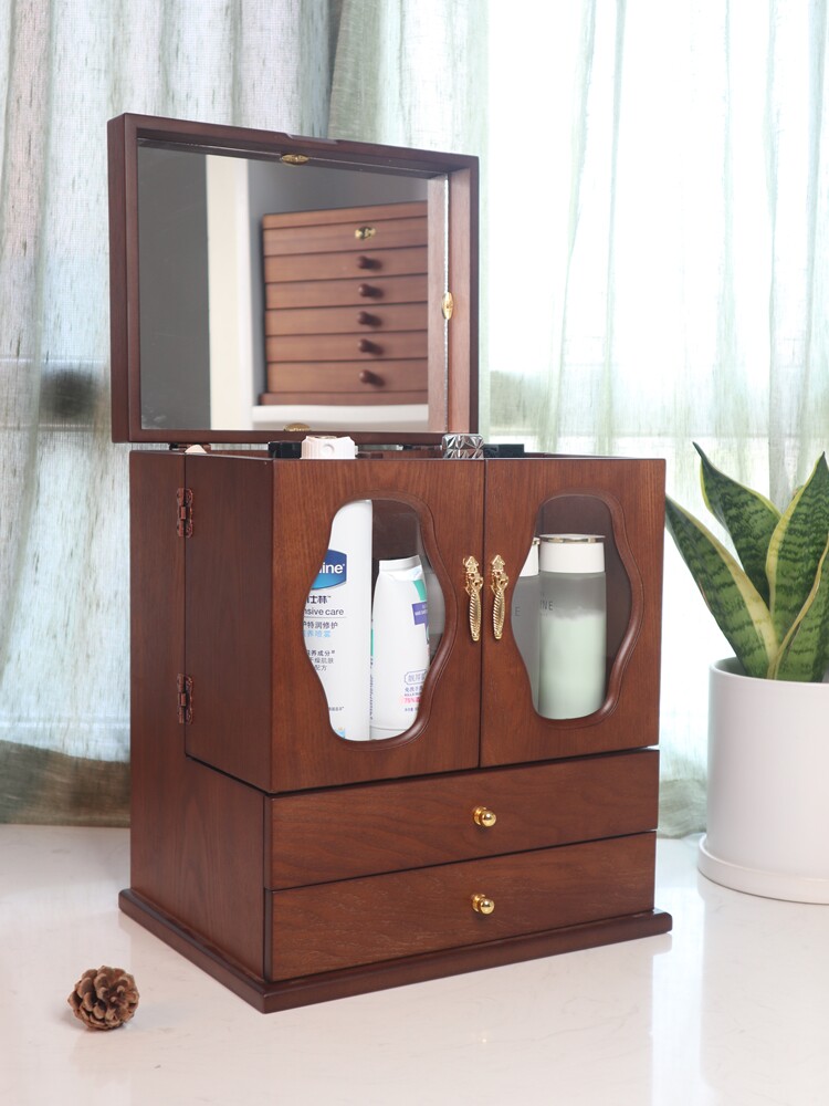 Коробка для хранения, деревянное зеркало, настольный туалетный столик, ретро коробочка для хранения