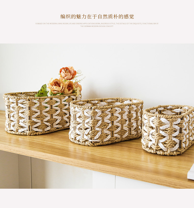 Настольная коробка для хранения, пульт, корзина для хранения, плетеная система хранения
