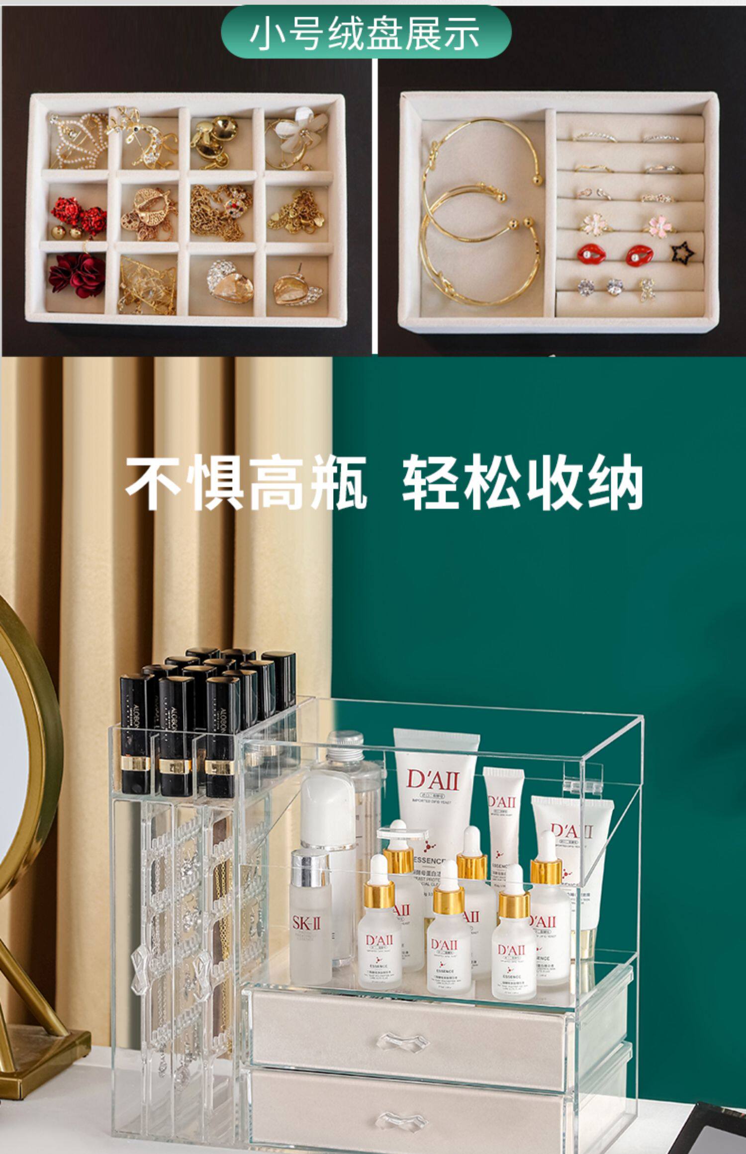 Настольная коробка для хранения, туалетный столик, вместительные и большые прозрачные серьги, ожерелье