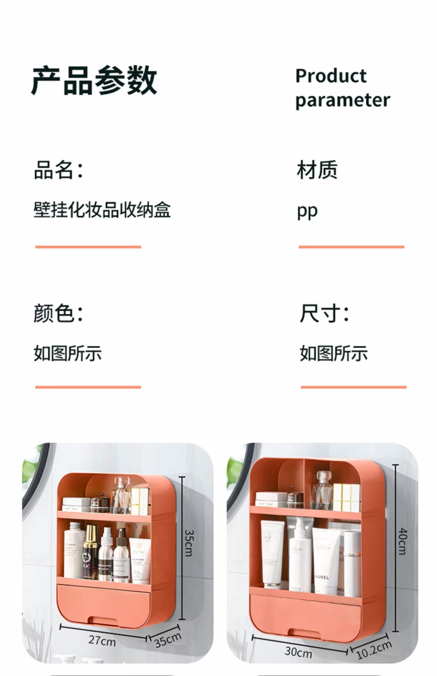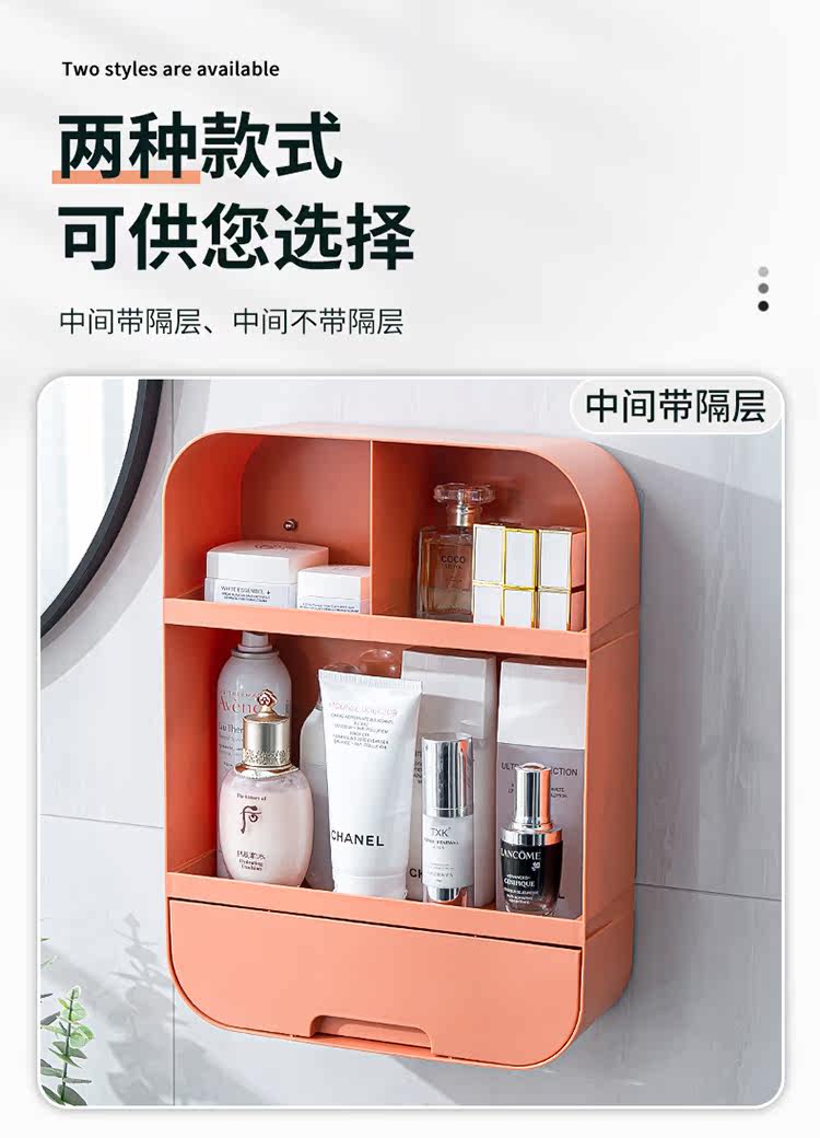 Косметика для хранения ящика для хранения домашняя стена -с большим -ямым -Без ругая ванная комната туалет, туалетная туалет, туалетный столик по уходу за кожей