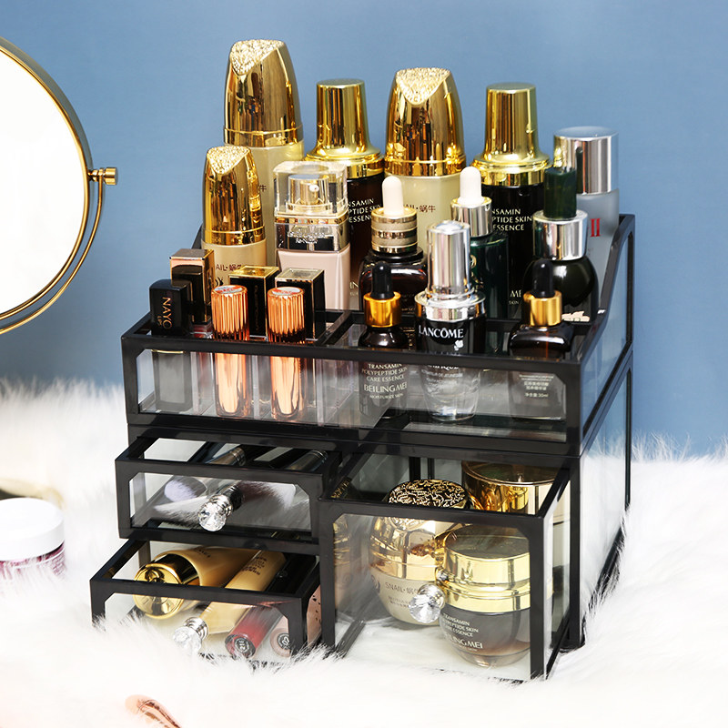 Косметическая коробка для хранения, туалетный столик, вместительная и большая многослойная прозрачная помада для ухода за кожей