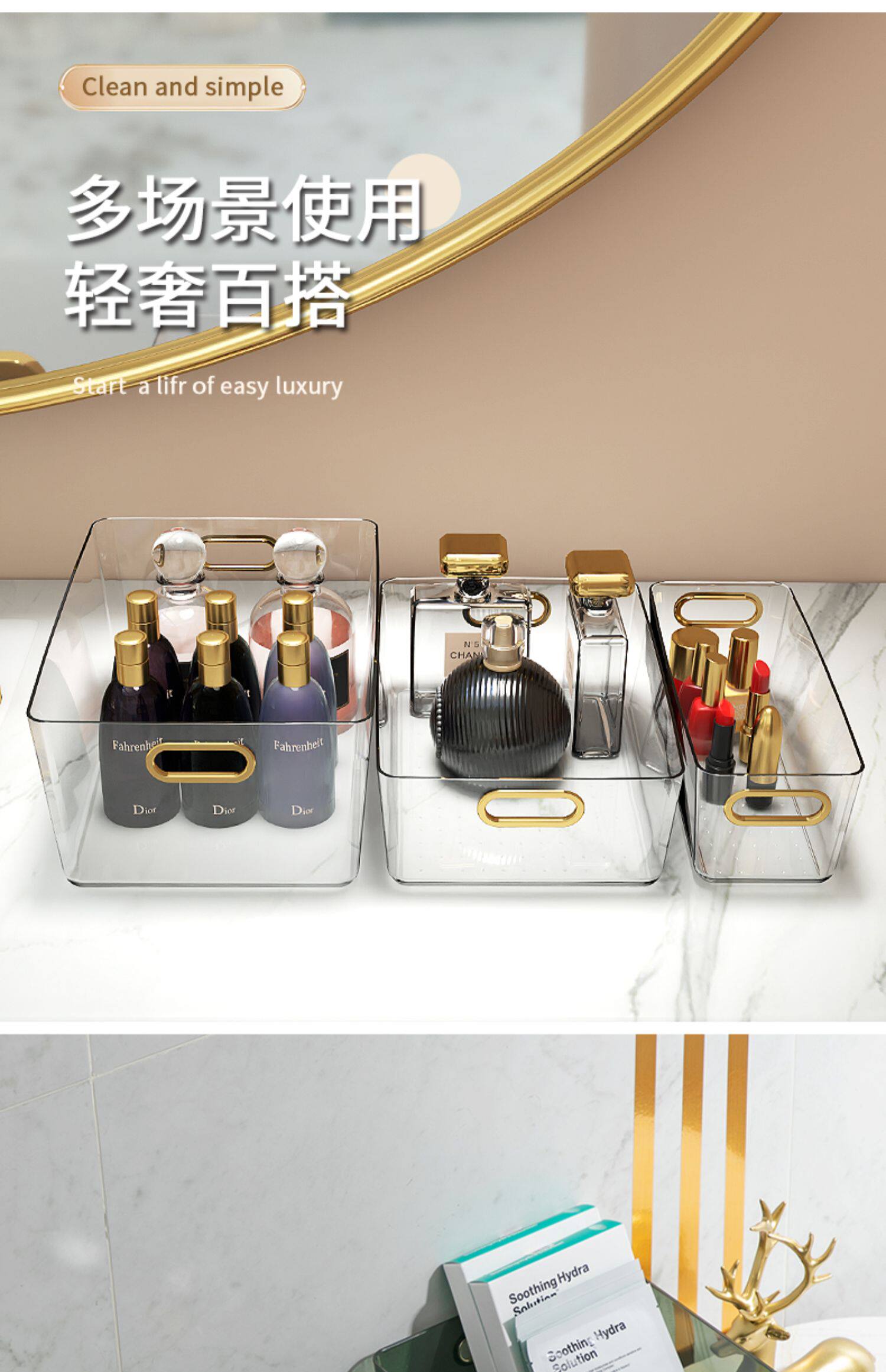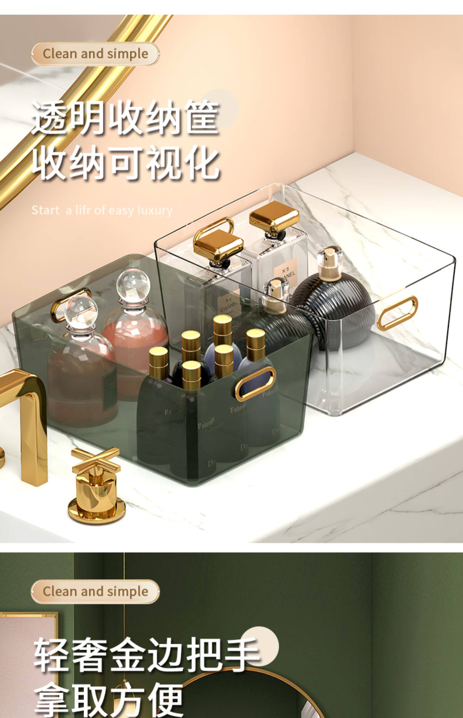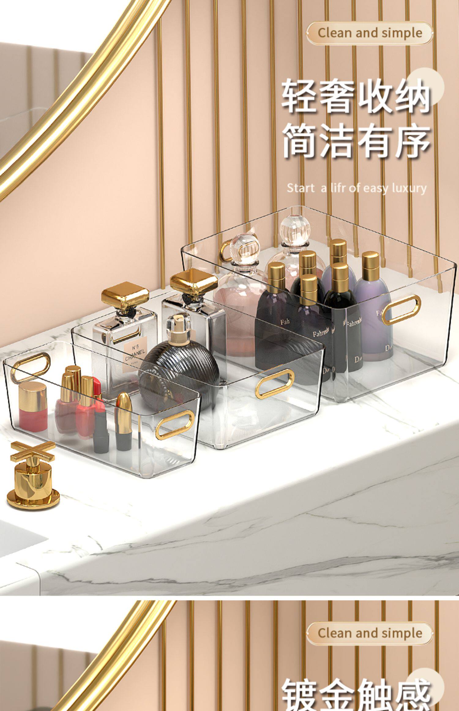 Настольная косметическая прозрачная коробка для хранения, маска для лица для ухода за кожей, корзина для хранения, легкий роскошный стиль