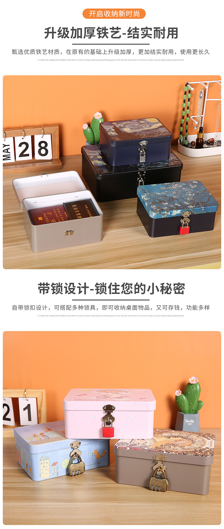 Настольная коробка для хранения, косметическая жестяная коробка, коробочка для хранения
