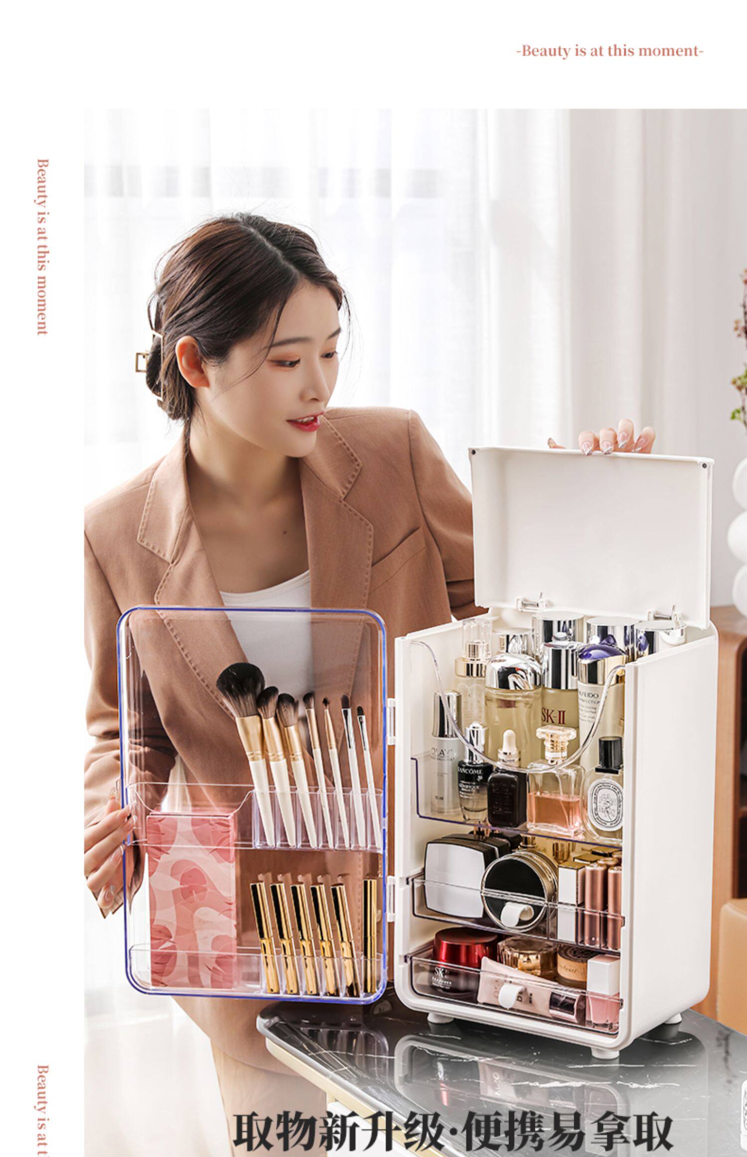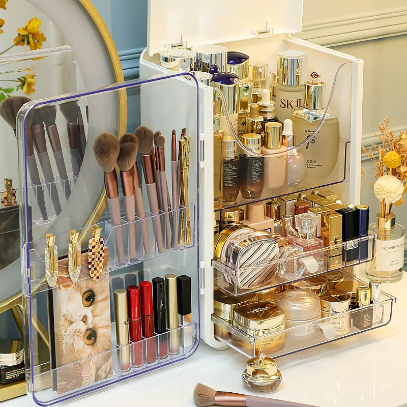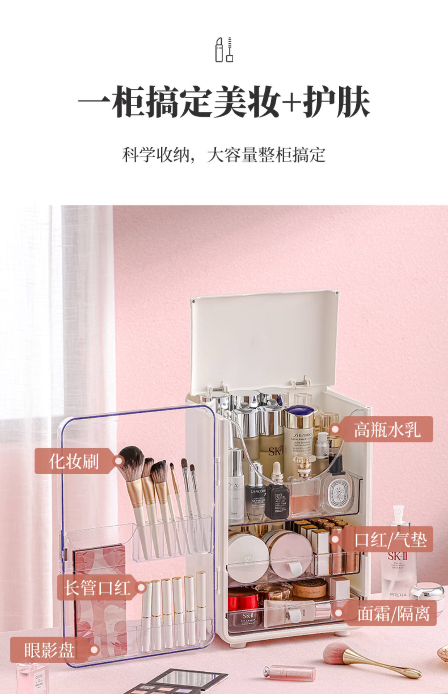 Косметическая вместительная и большая коробка для хранения, настольный ящик для хранения, пылезащитный контейнер, помада для ухода за кожей, туалетный столик, новая коллекция, популярно в интернете