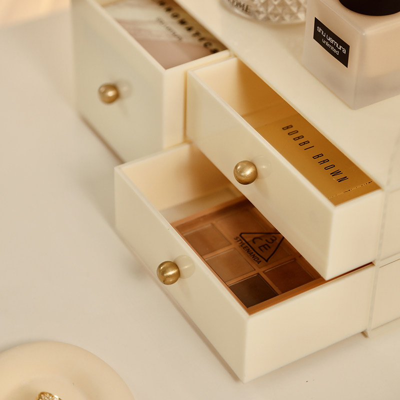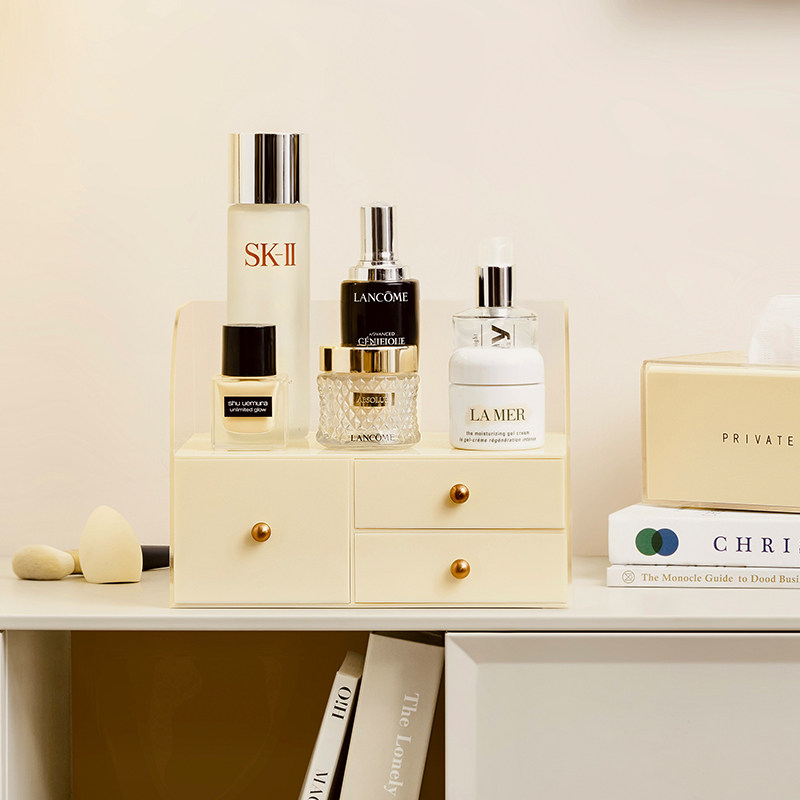 Акриловая настольная кремовая коробка для хранения, помада для ухода за кожей, кисть, вместительный и большой ящик для хранения