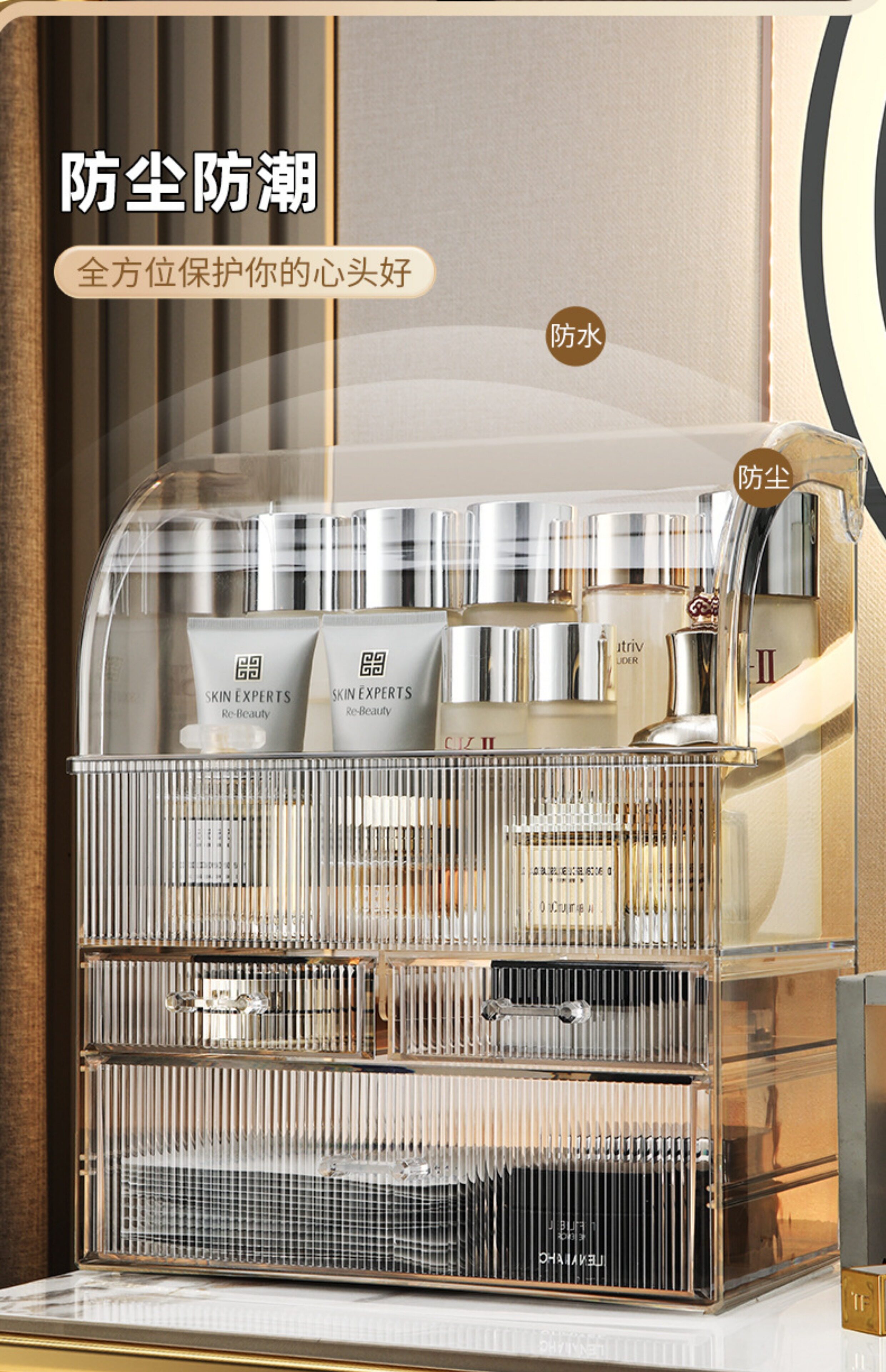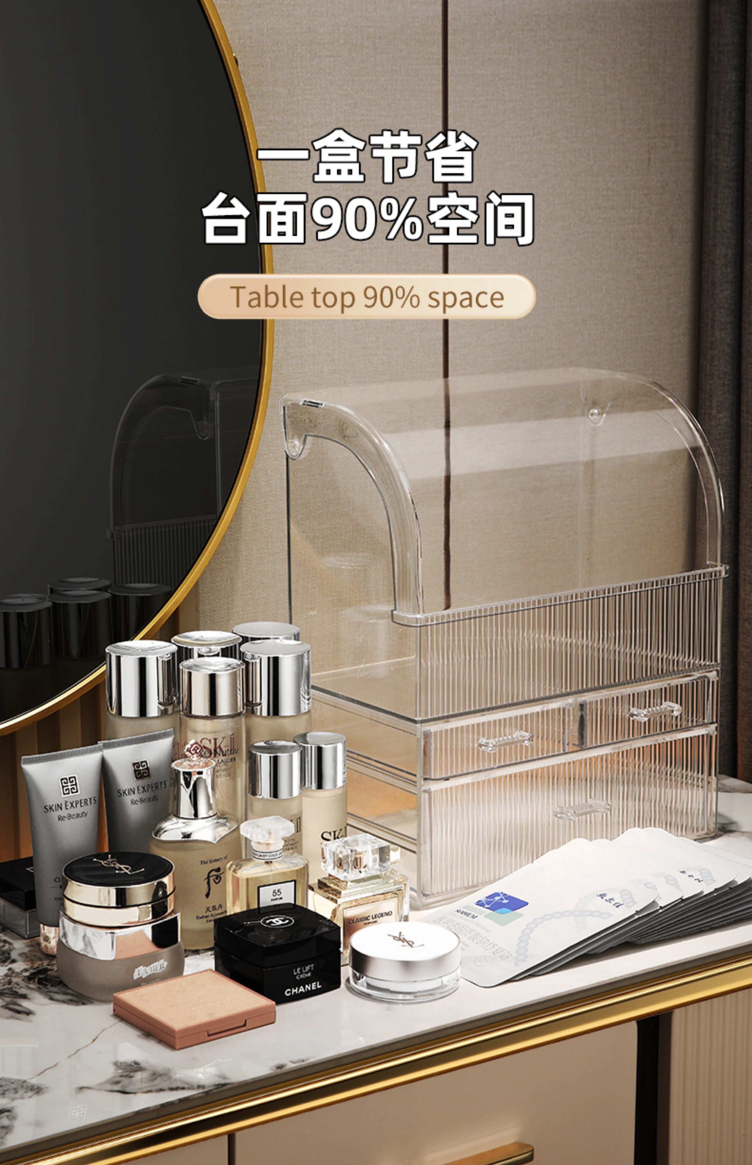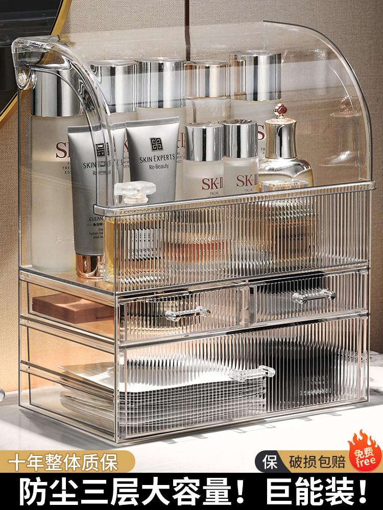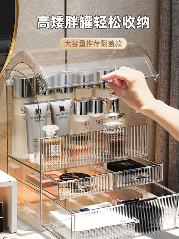 Косметическая настольная прозрачная коробка для хранения, вместительный и большой туалетный столик, помада для ухода за кожей, акриловая система хранения