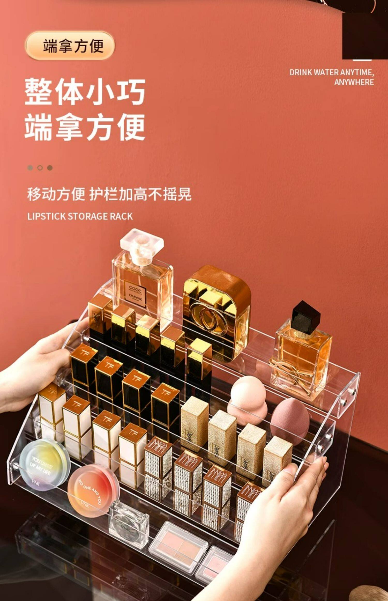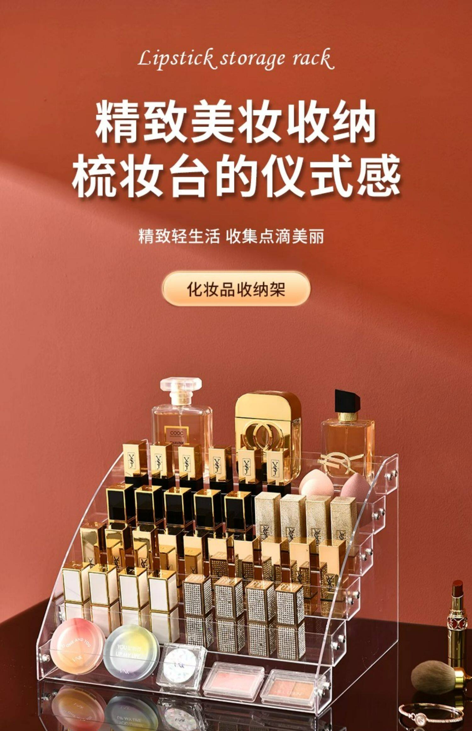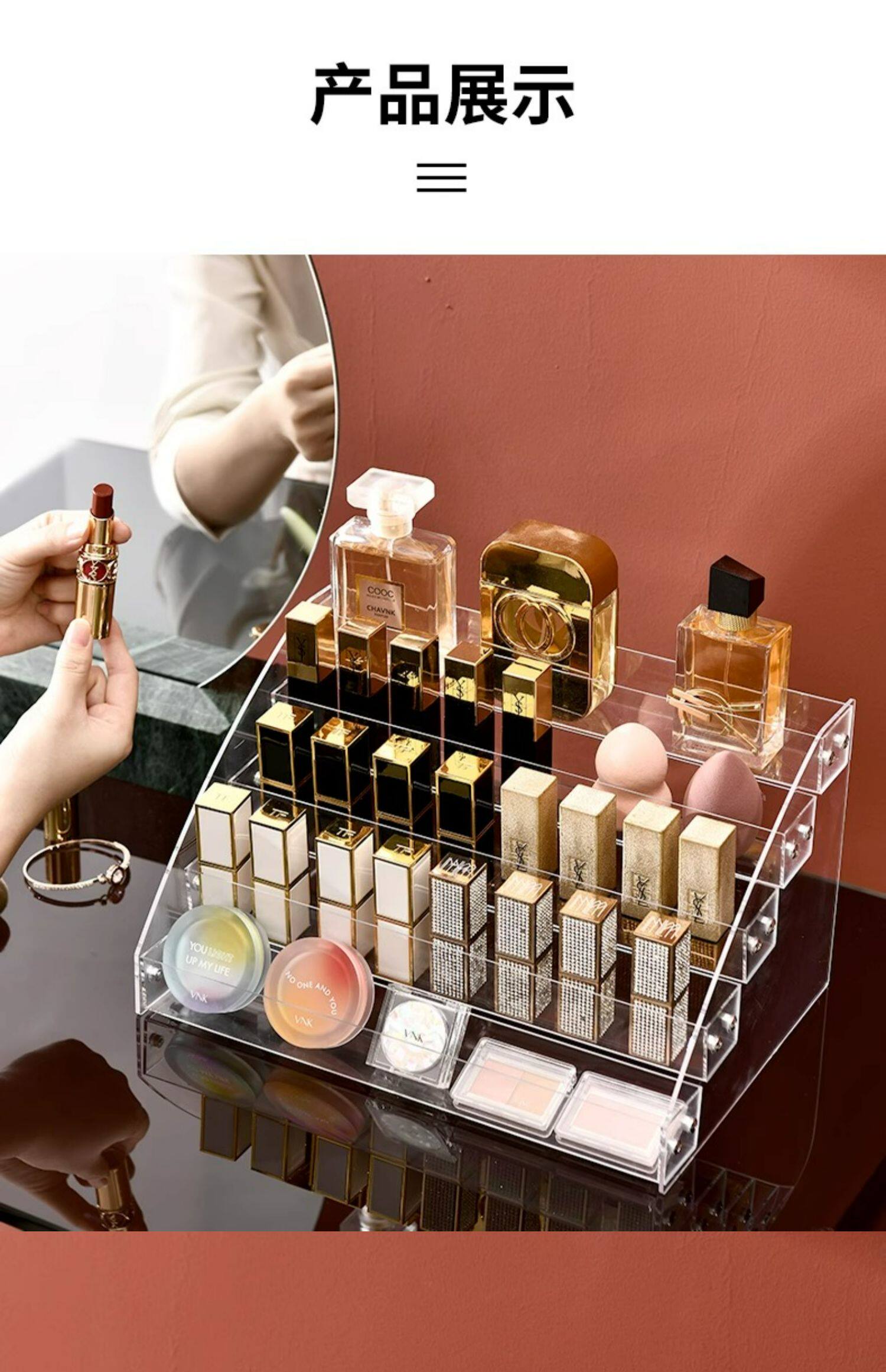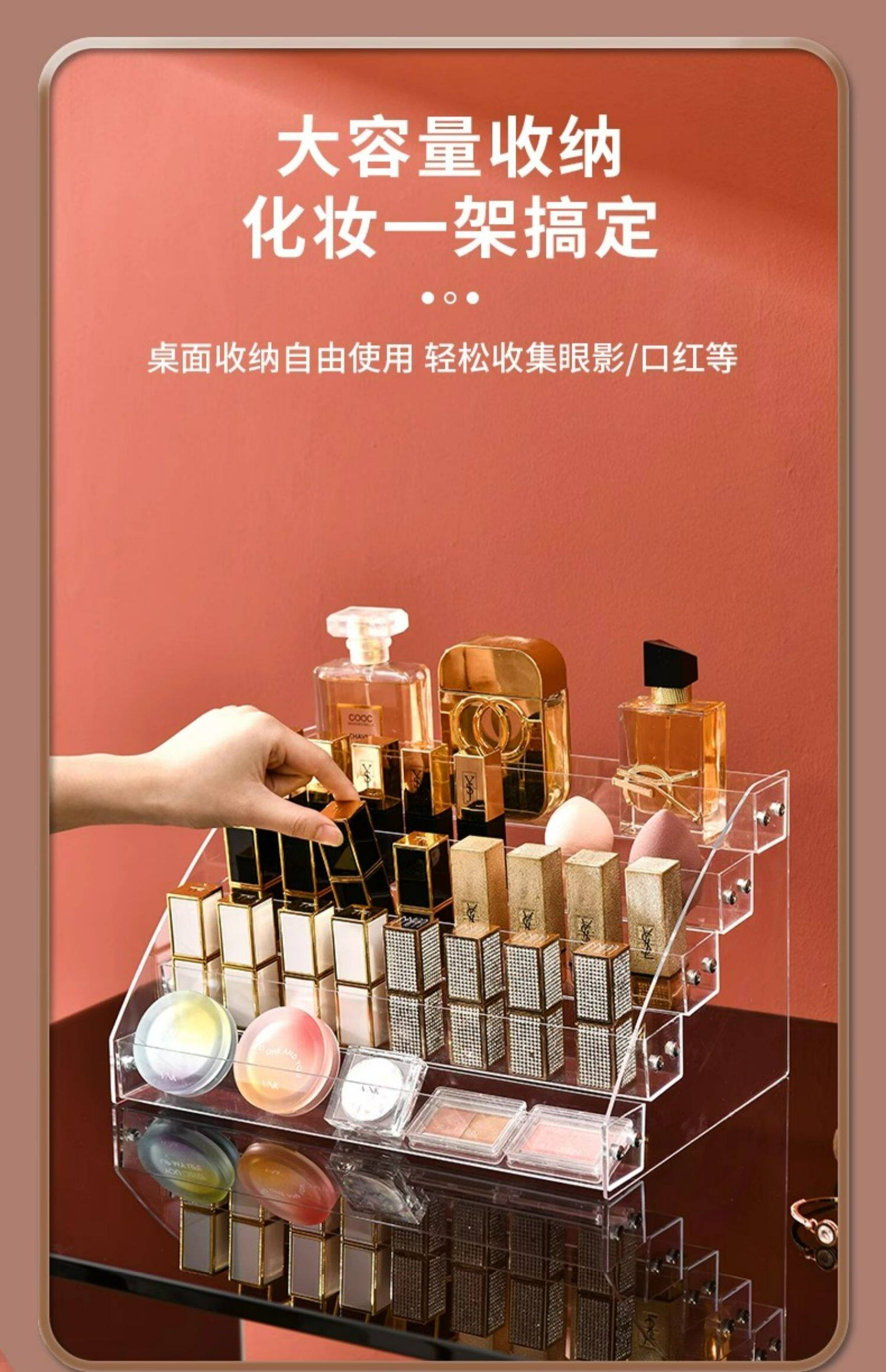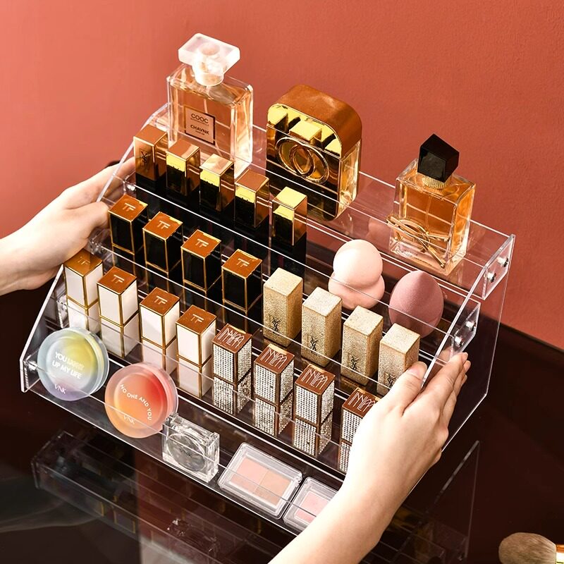 Тени для век, коробка для хранения, база под макияж, прозрачная помада, акриловый настольный косметический туалетный столик