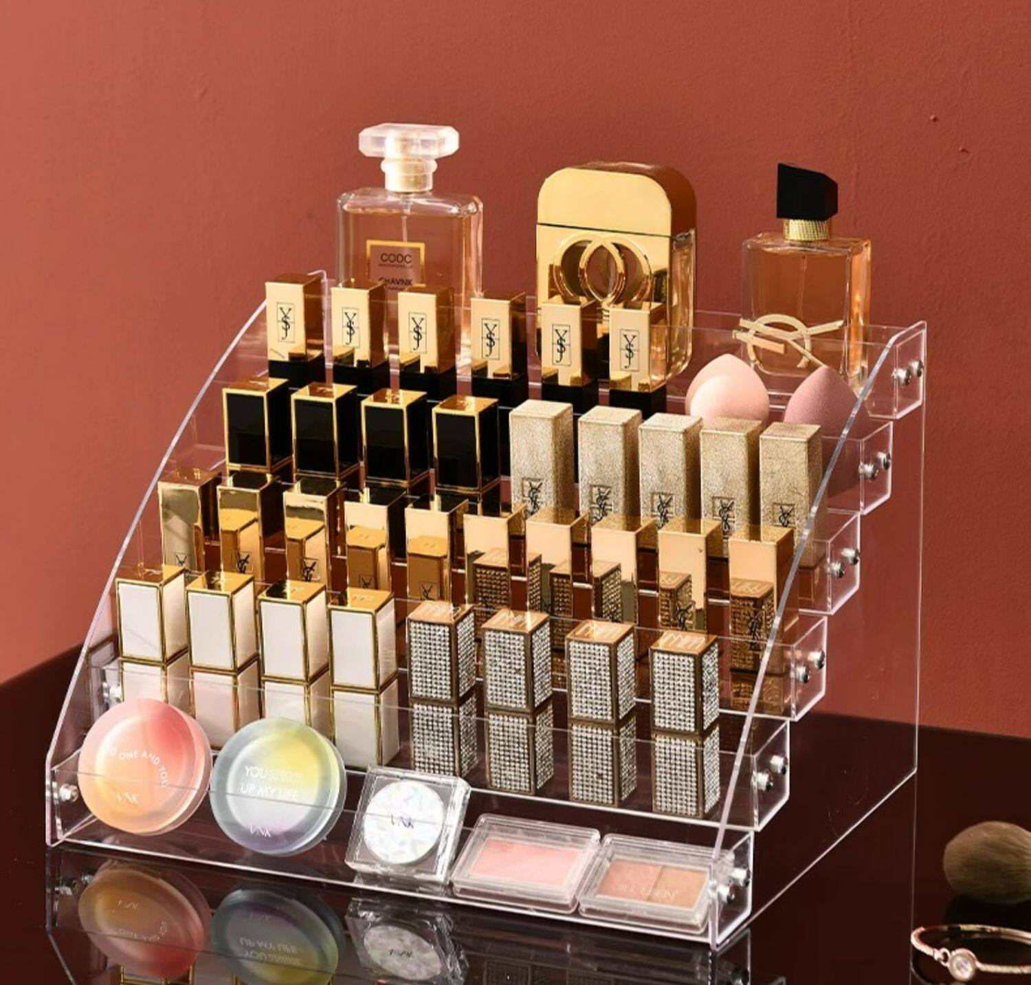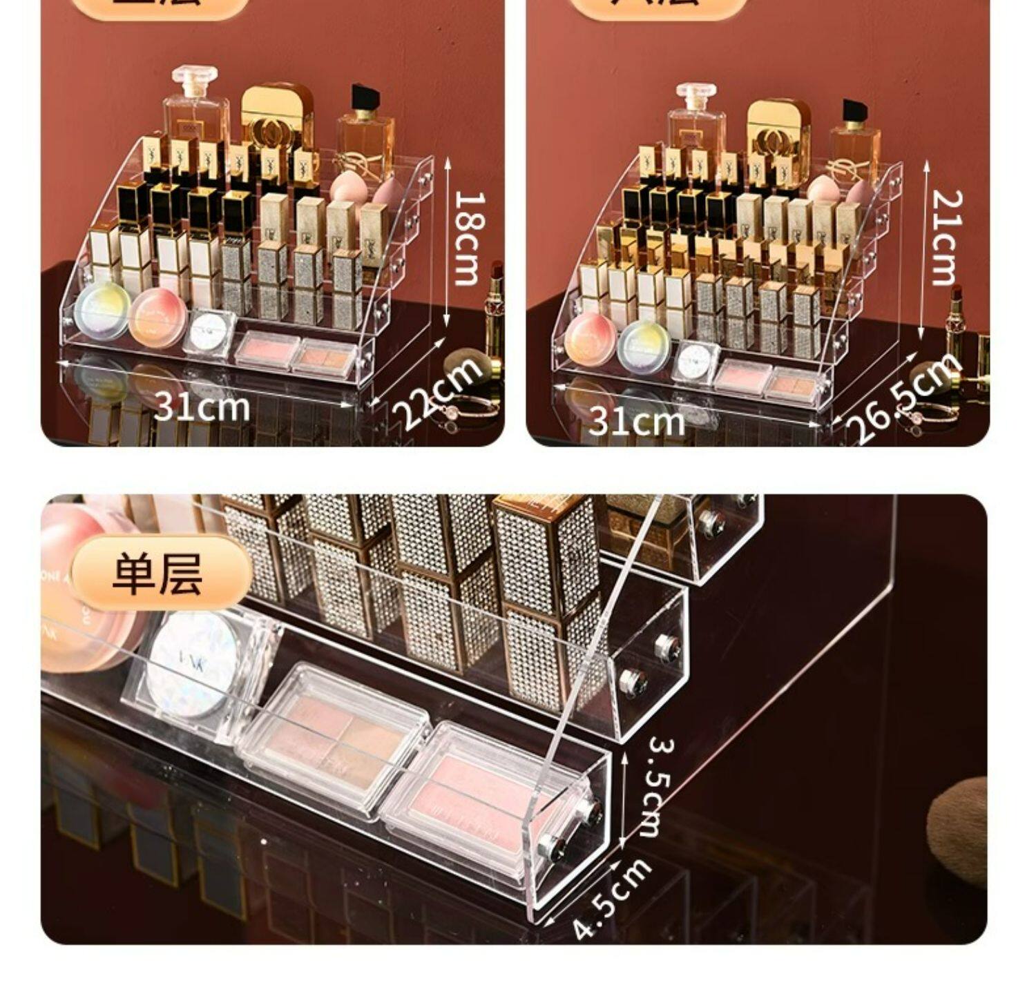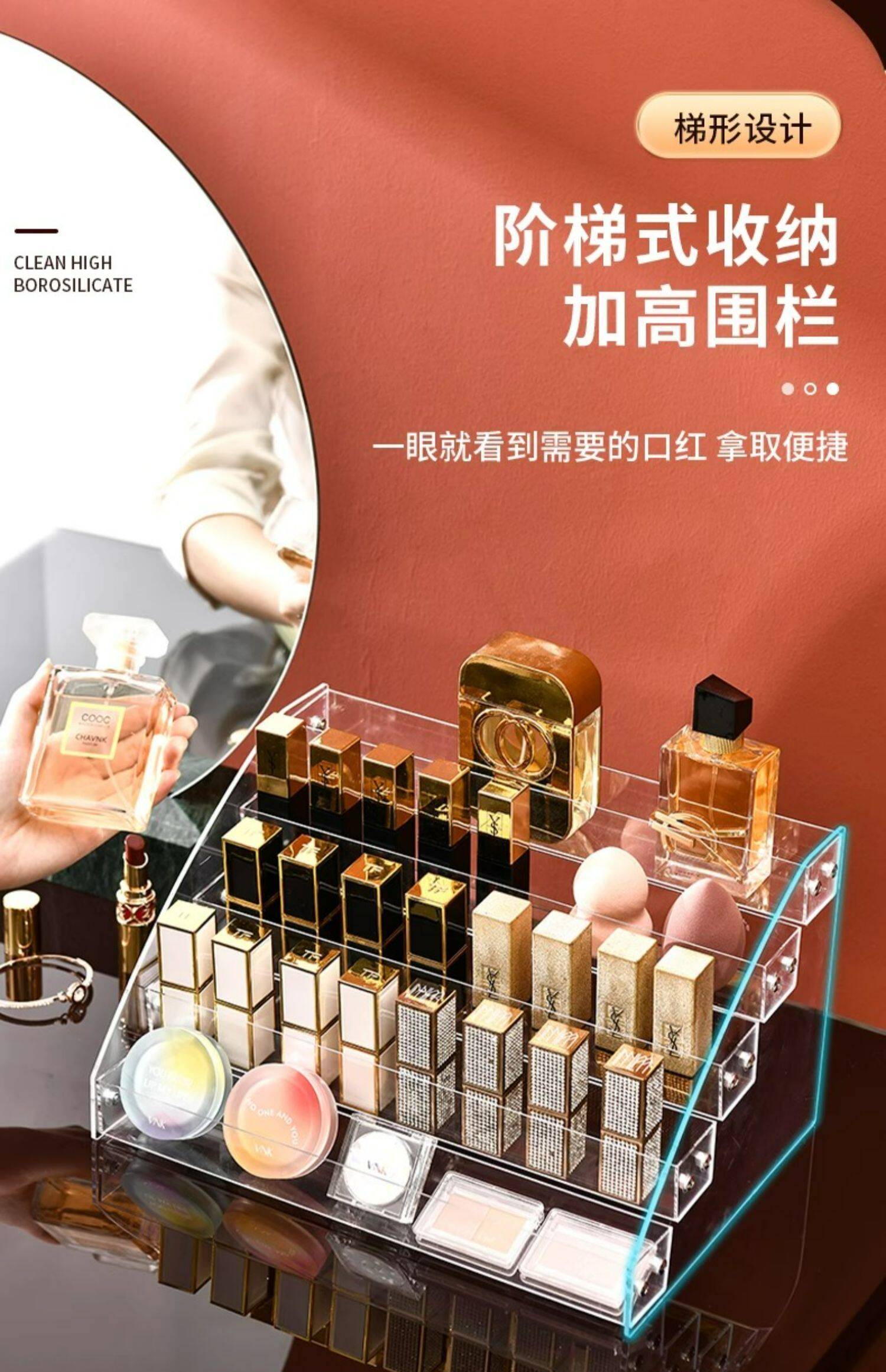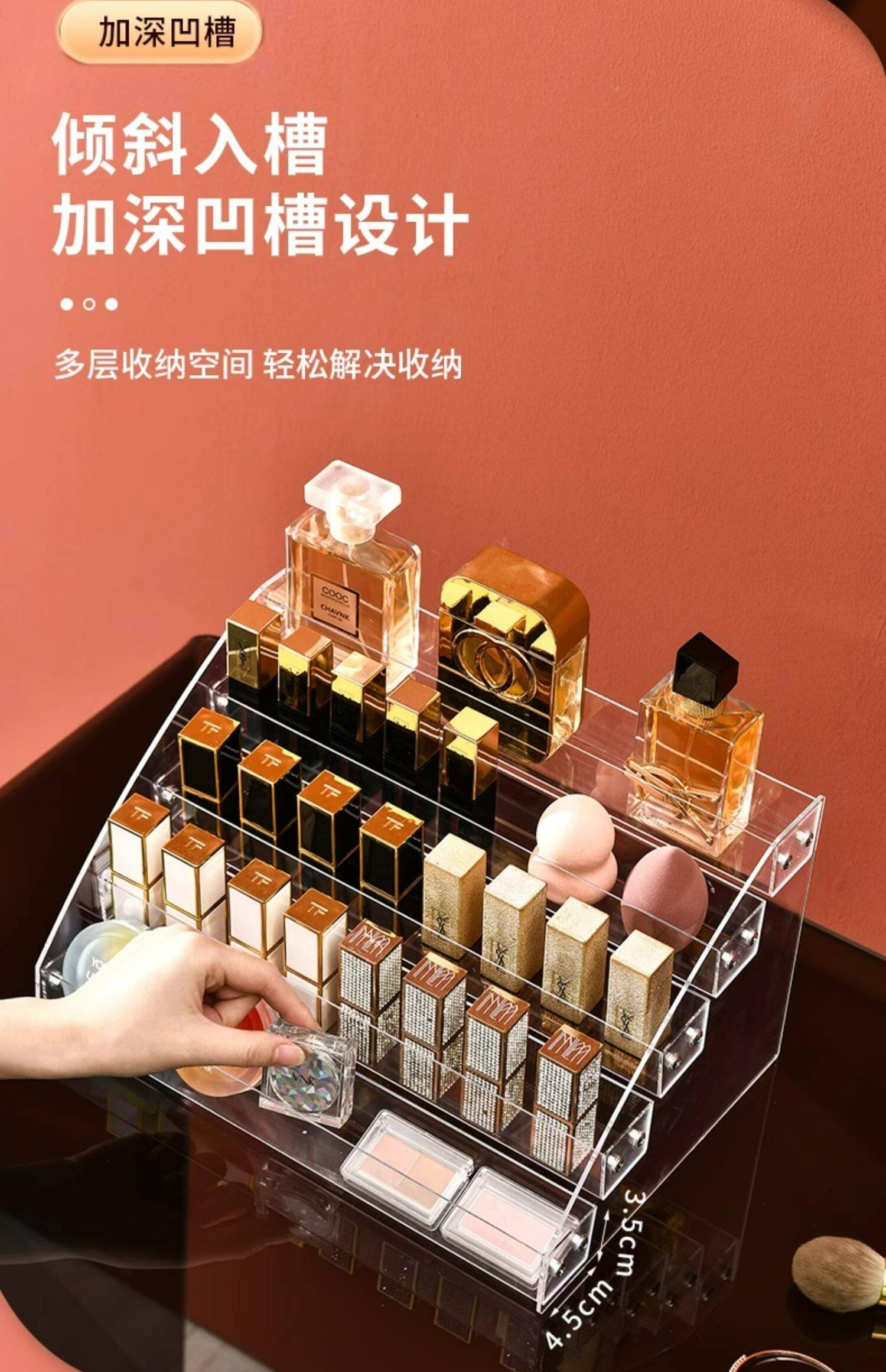 Тени для век, коробка для хранения, база под макияж, прозрачная помада, акриловый настольный косметический туалетный столик